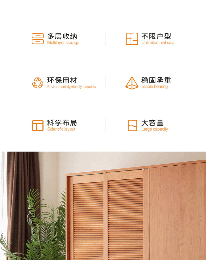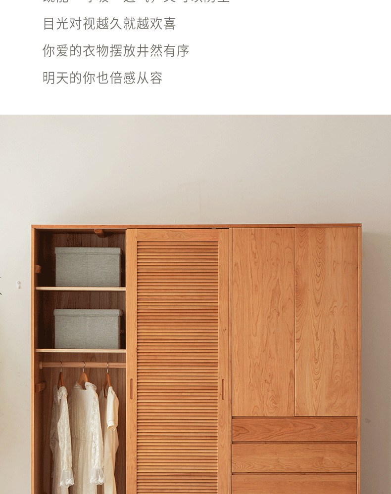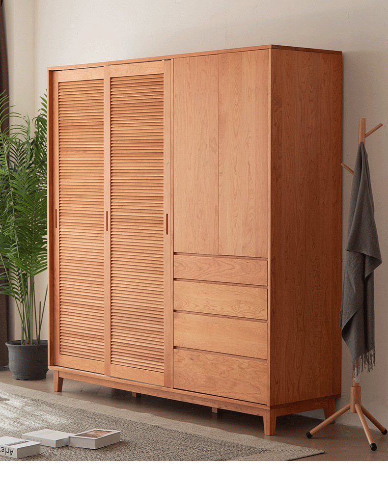 북유럽 일본식 체리 우드 옷장 풀 솔리드 우드 침실 가정용 대용량 옷장 일본식 Bmane 푸시-풀 옷장스토어 가기