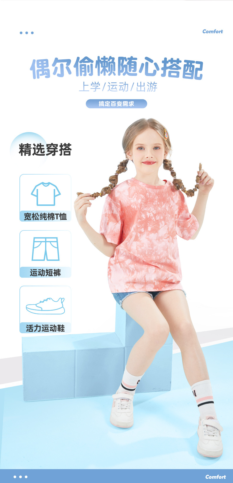 소년과 소녀 아기 코튼 반팔 티셔츠 여름 디자인 센스 루즈 탑 레인보우 그라디언트 넥타이 트렌디 한 색상스토어 가기