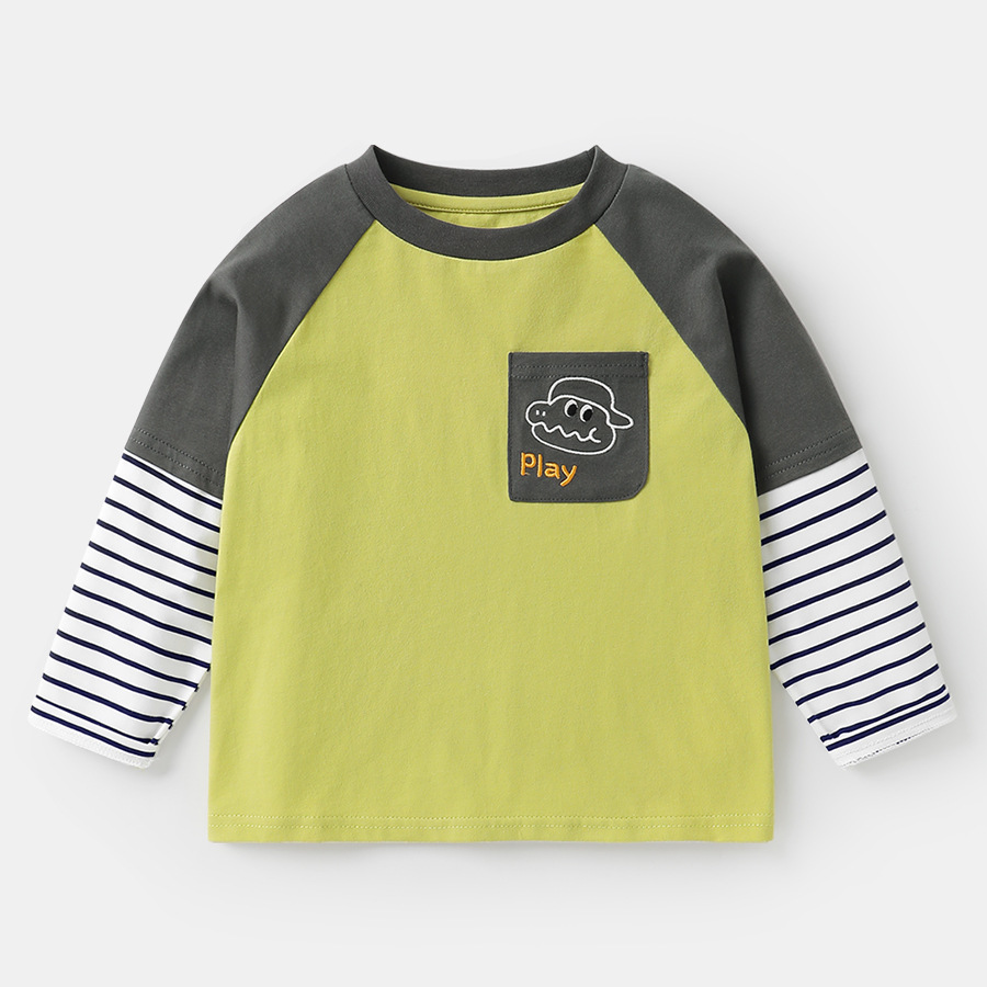 오른쪽 유럽 소년 가짜 투피스 긴팔 티셔츠 봄 봄과 가을 어린이 착용 어린이 아기 기지 셔츠 탑 봄 조수스토어 가기