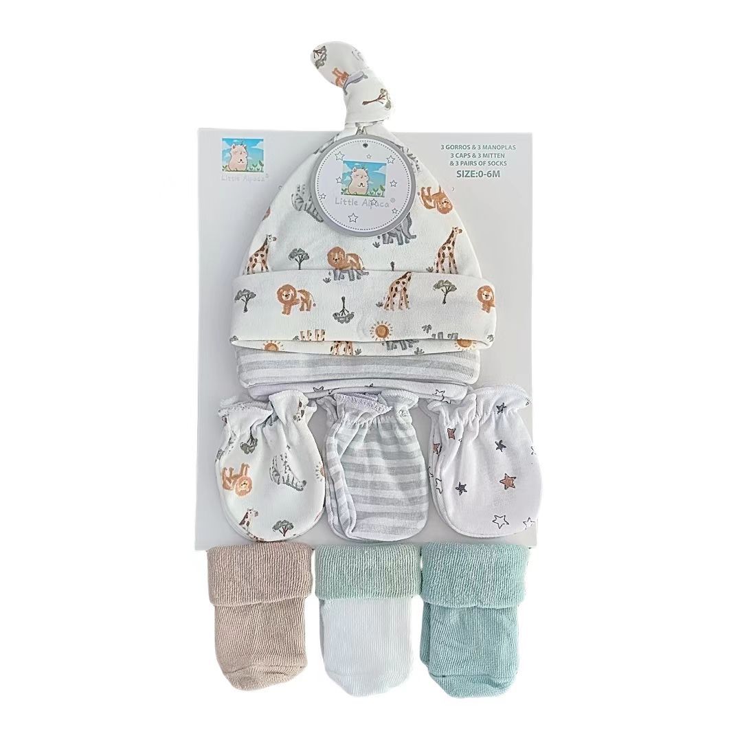 대외 무역 국경 간 유아 및 어린이 9종 세트 아기 모자, 장갑 및 양말 세트 신생아 태아 모자 안티 스크래치 페이스 조합스토어 가기
