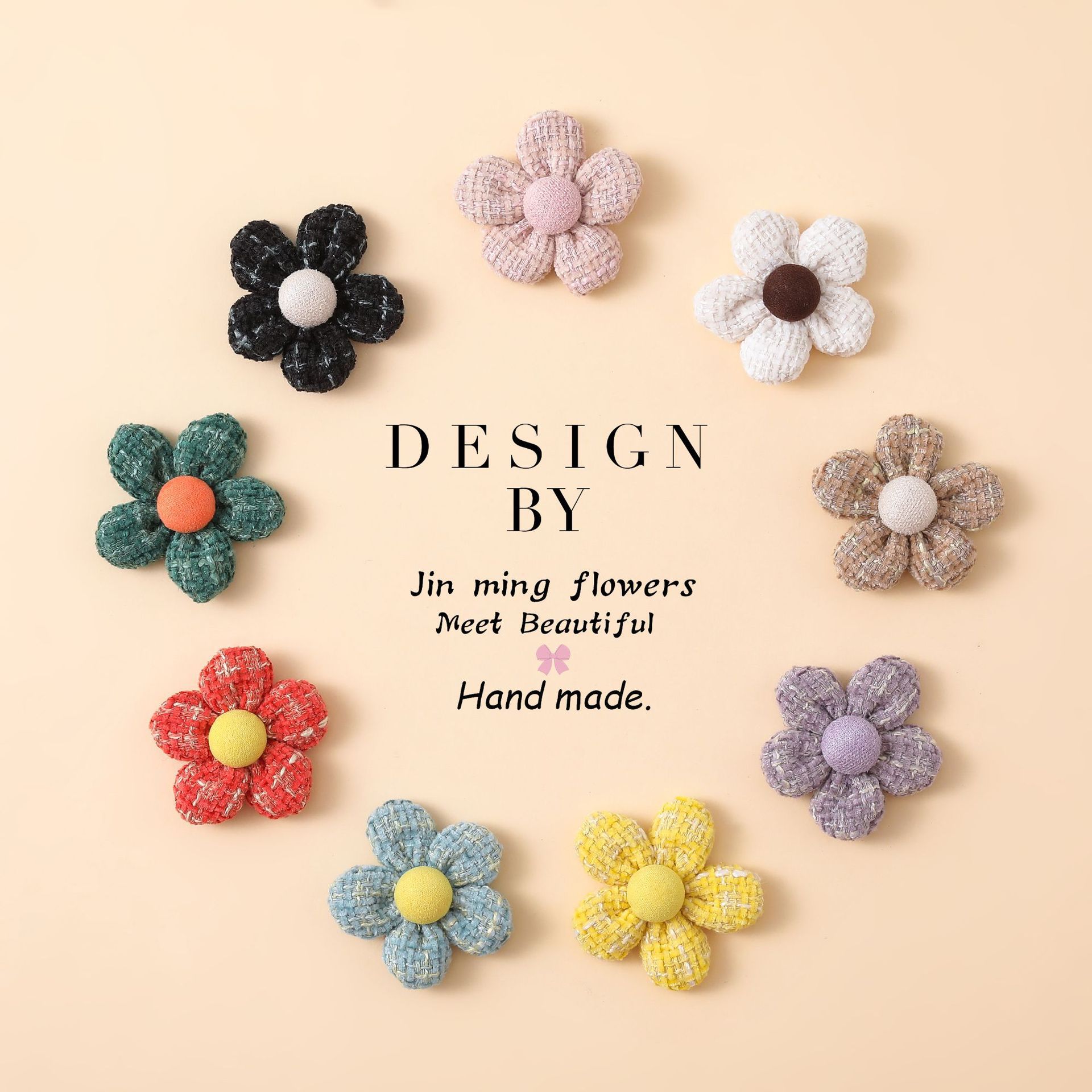DIY 직물 수제 꽃 액세서리 짠 격자 무늬 5 꽃잎 꽃 액세서리 의류 액세서리 작은 향기로운 스타일 큰 5 꽃잎스토어 가기