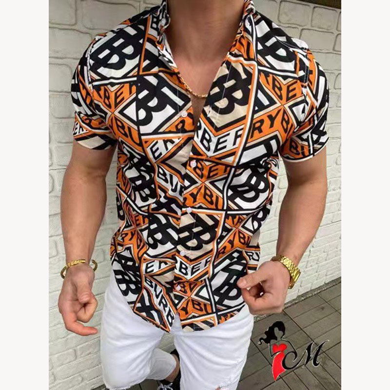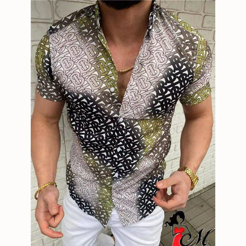 아마존 새로운 국경 남성 패션 인쇄 하와이 짧은 소매 셔츠 캐주얼 카디건 최고 유럽 크기