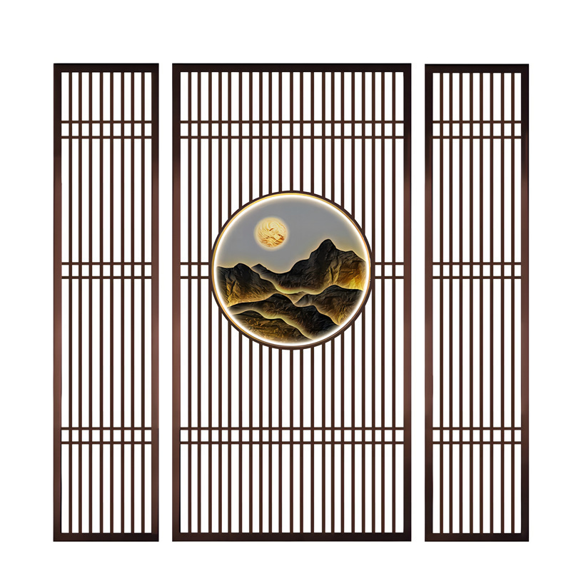 철제 스크린 파티션 거실 사무실 신중국풍 격자무늬 입구 현관 배경 레이저 커팅 디자인