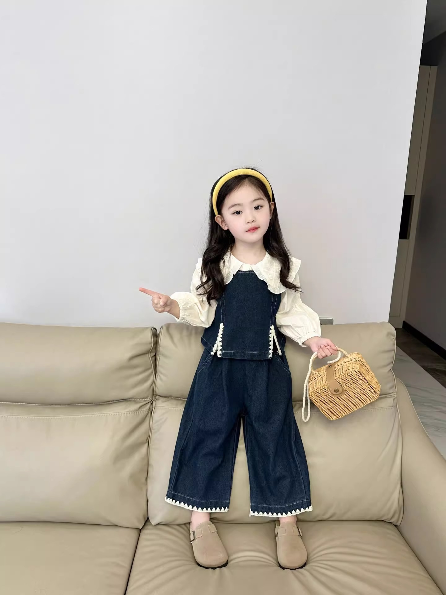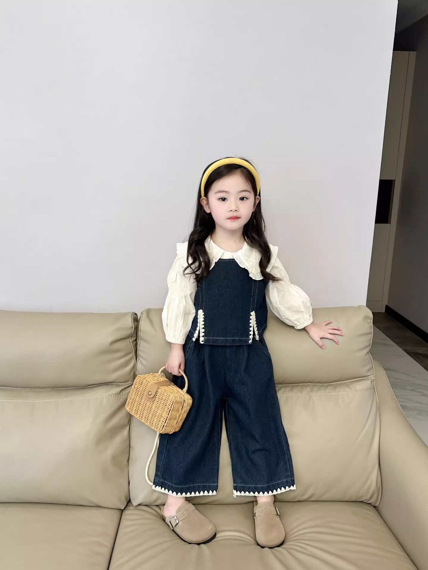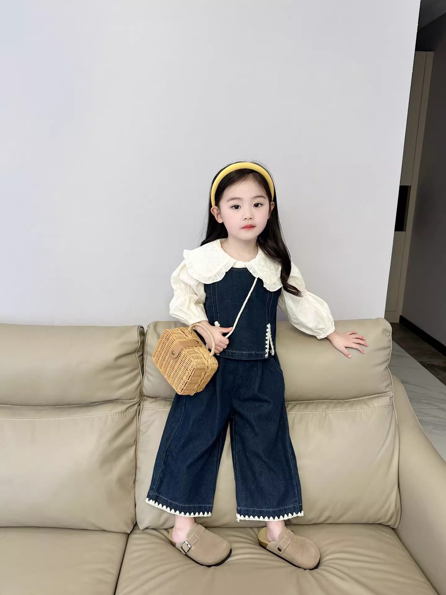 소녀의 봄 가을 세트 2025 봄 새로운 한국 어린이 패션 셔츠 데님 조끼 바지