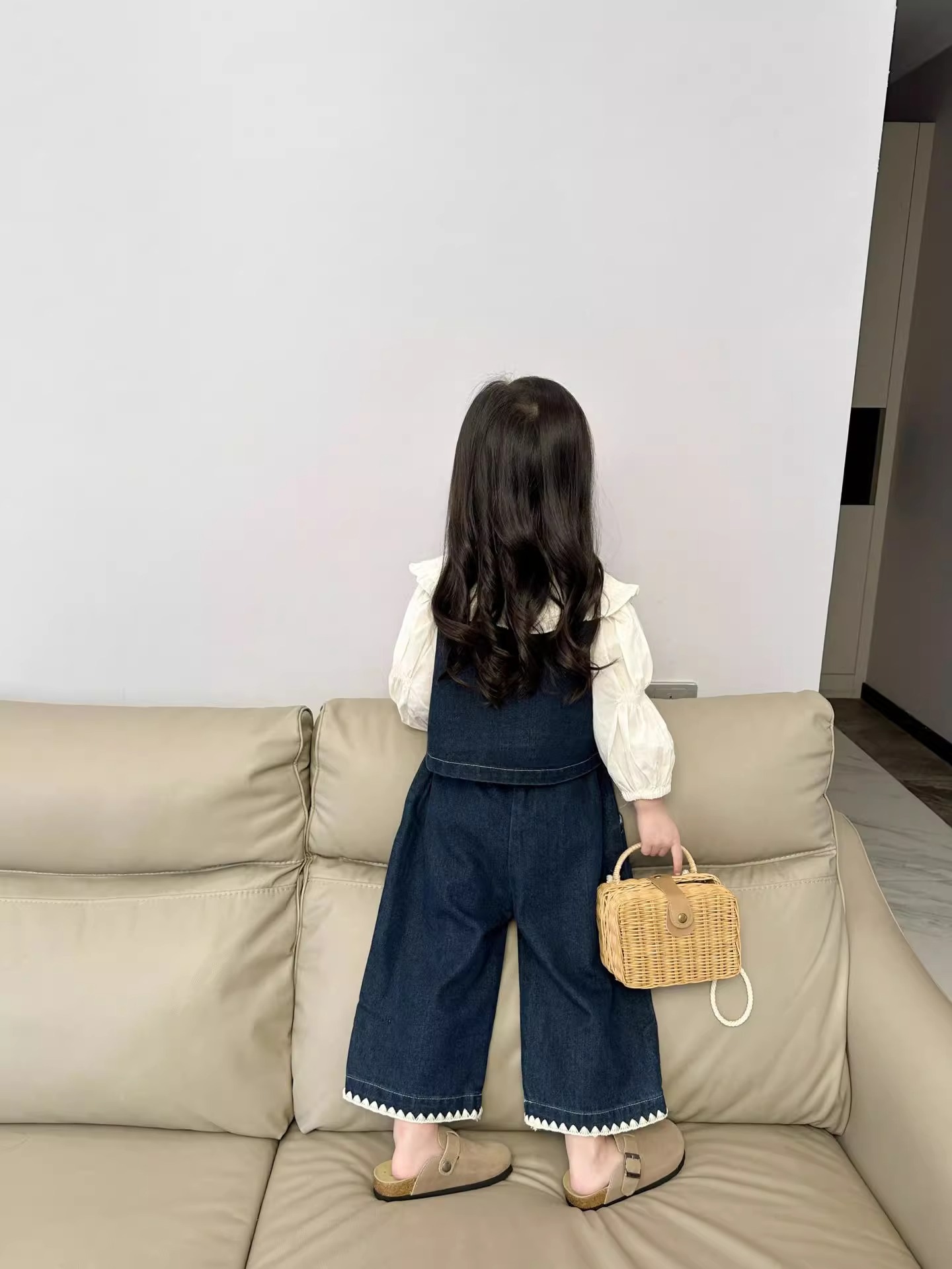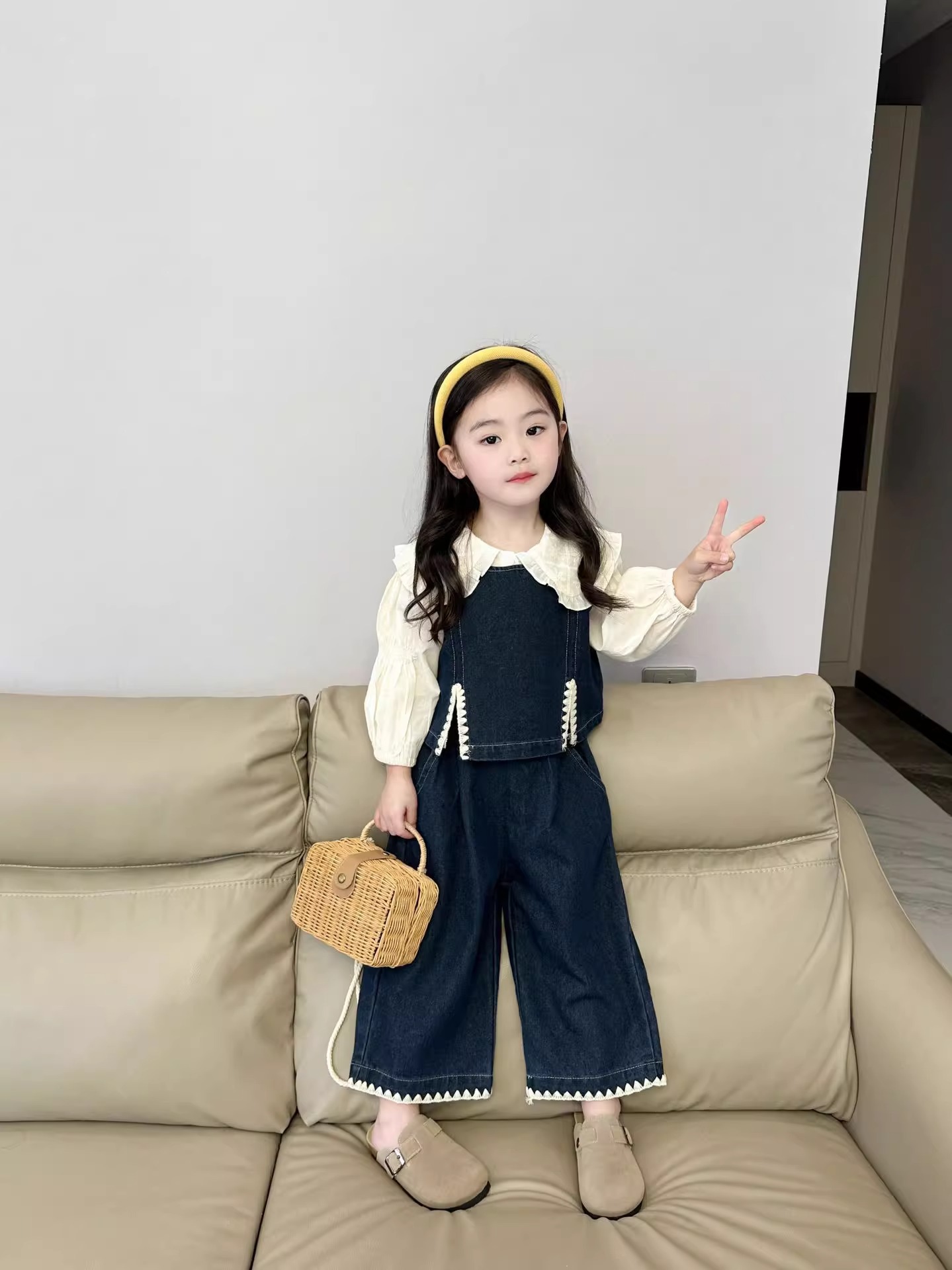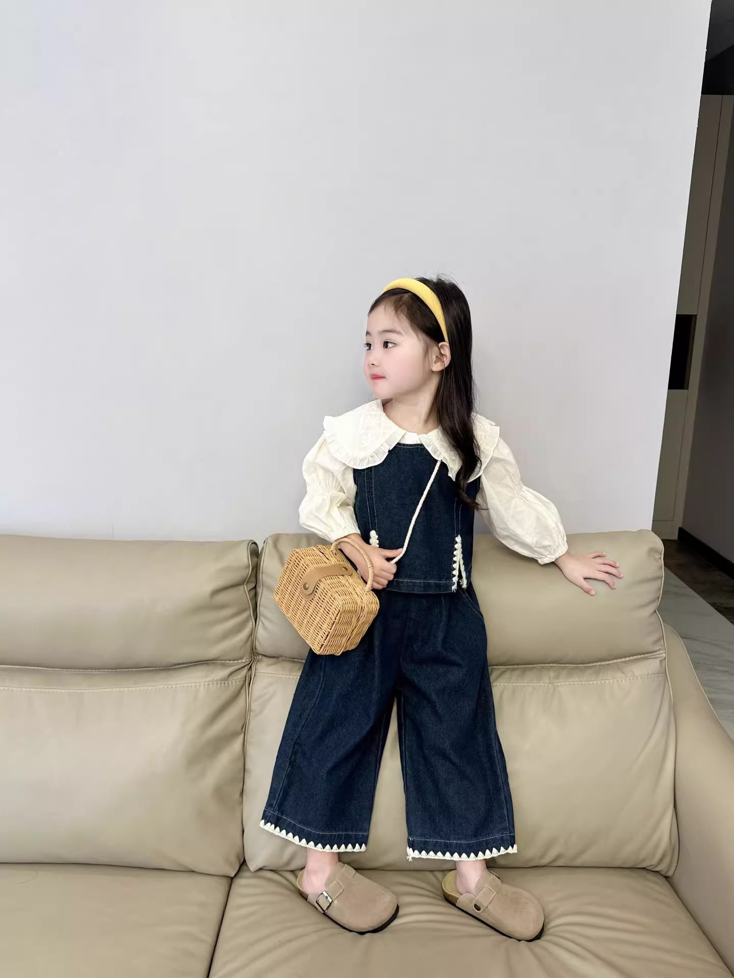 소녀의 봄 가을 세트 2025 봄 새로운 한국 어린이 패션 셔츠 데님 조끼 바지
