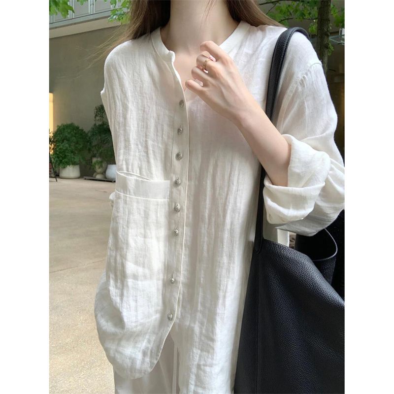 새로운 중국 스타일 국가 스타일 코튼 리넨 셔츠 여성의 여름 새로운 얇은 선 스크린 긴 소매 셔츠 느슨한 슬림 카디건 탑스토어 가기