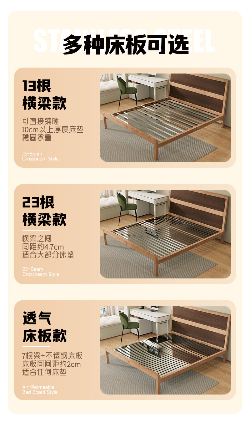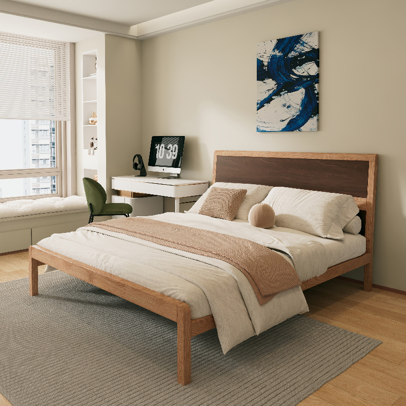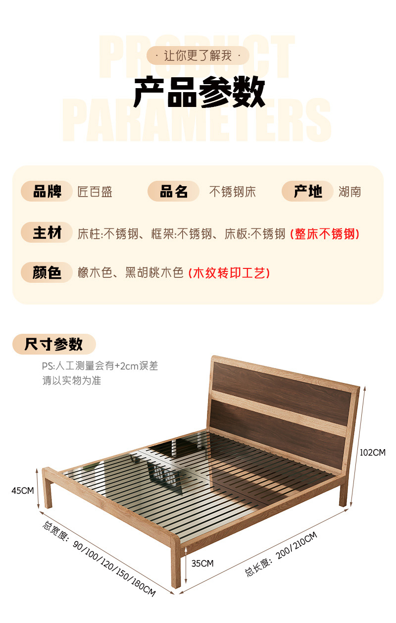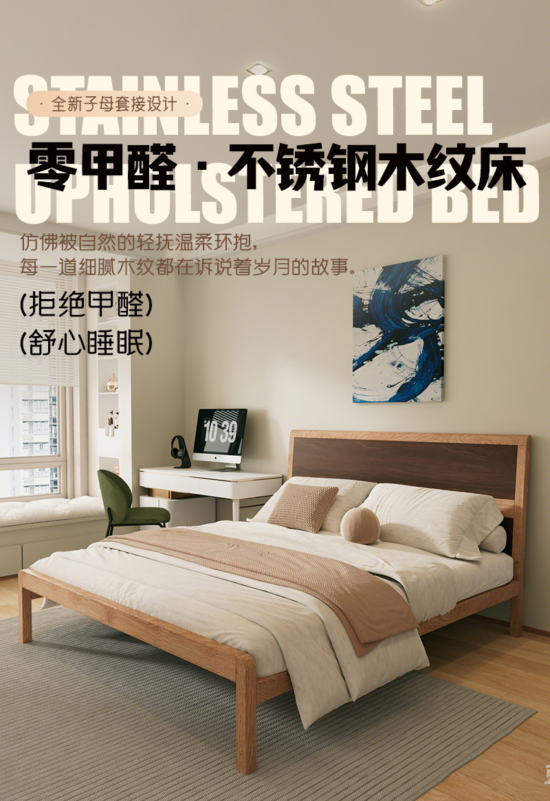 • 304 침대 프레임 오크 그레인 전사 컬러 + 통기성 침대 보드