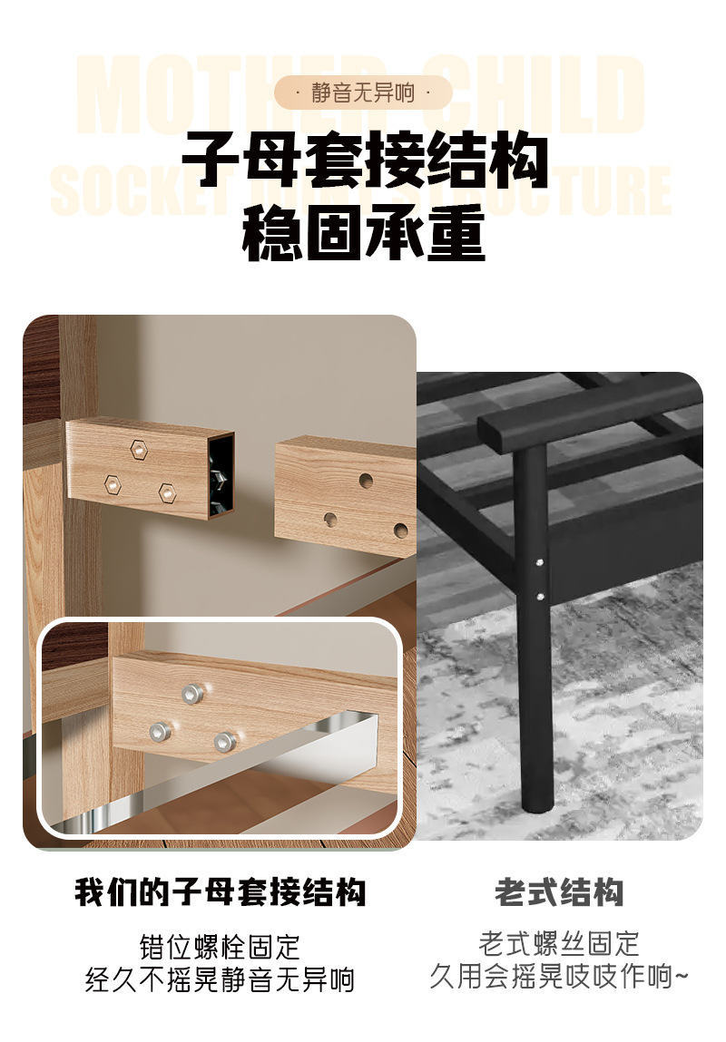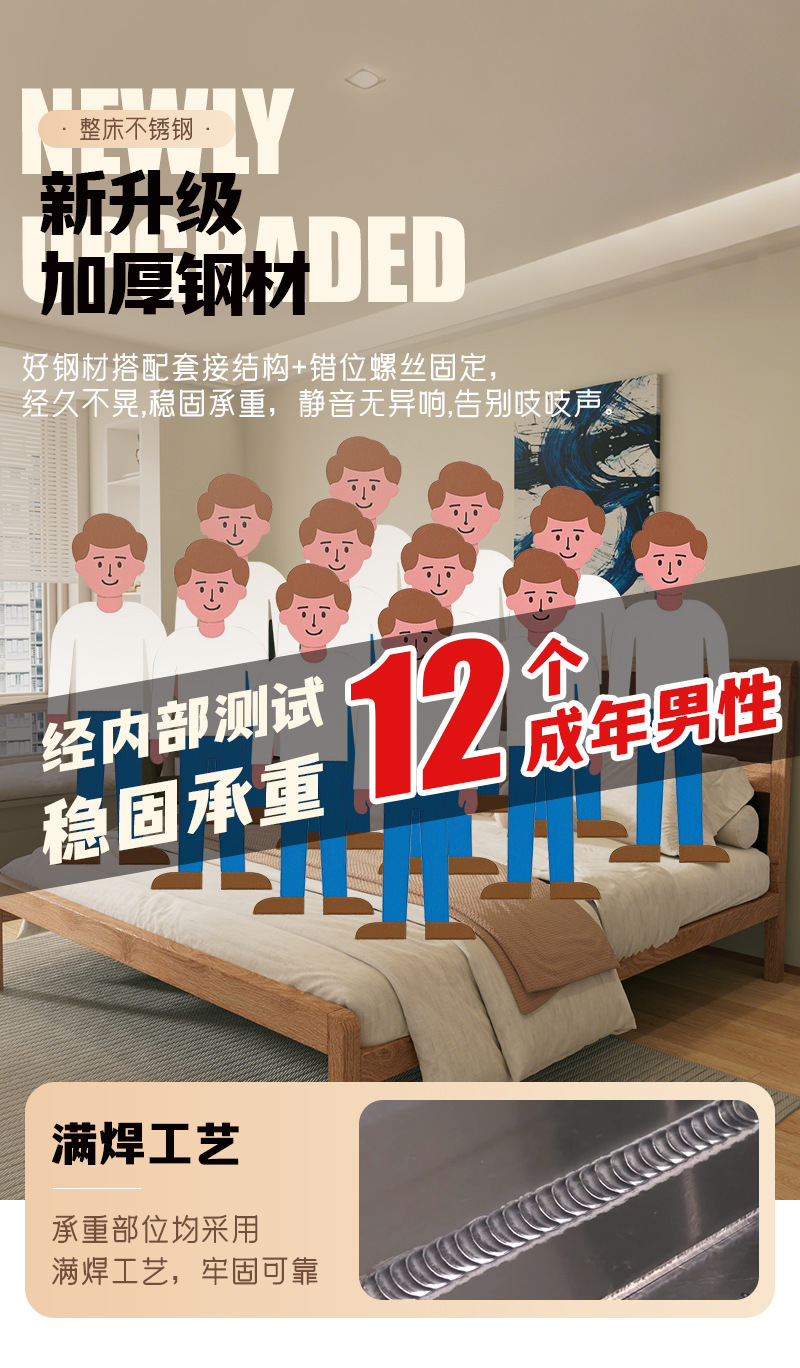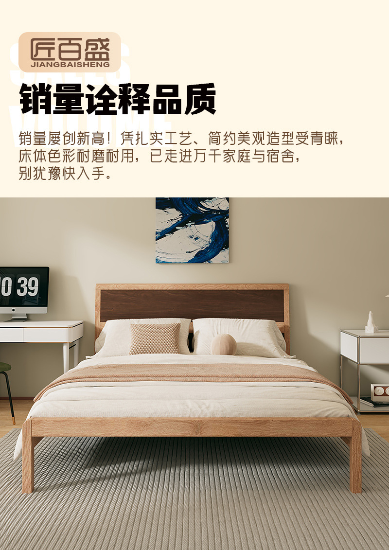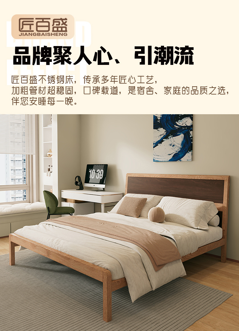 • 304 침대 프레임 오크 그레인 전사 컬러 + 통기성 침대 보드