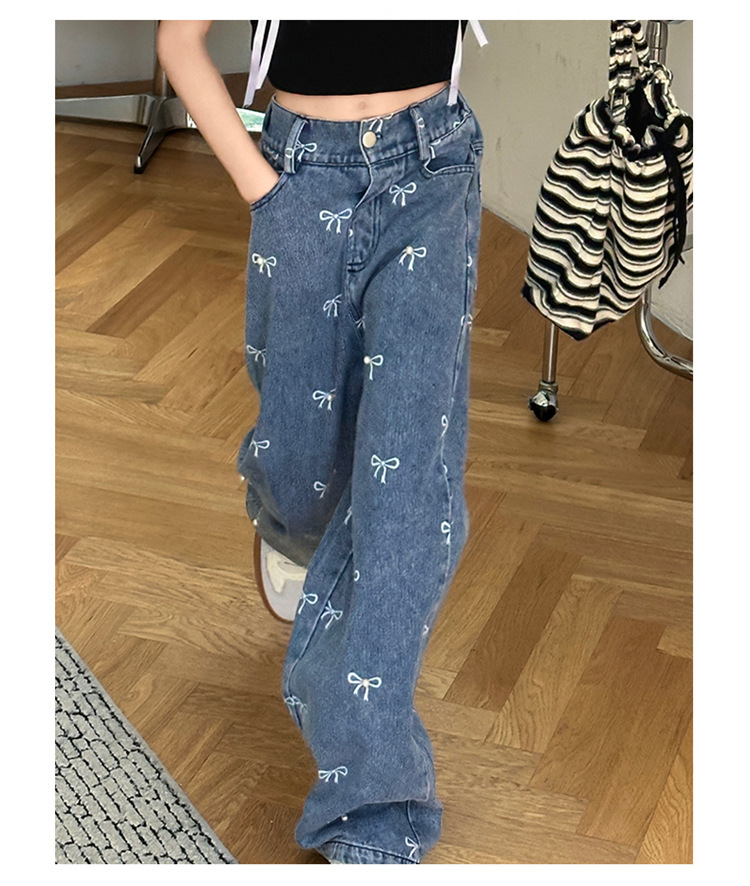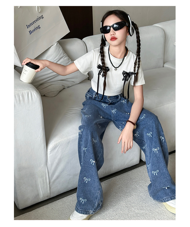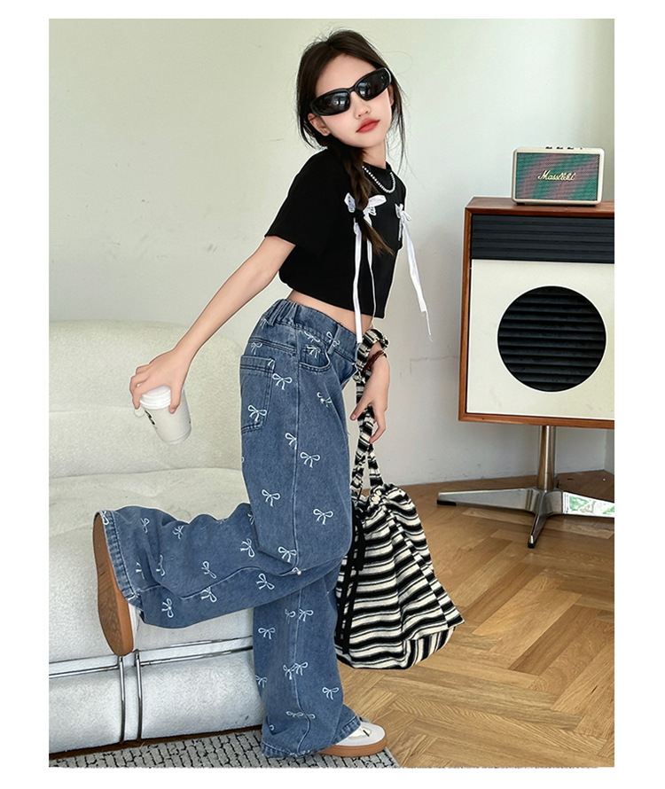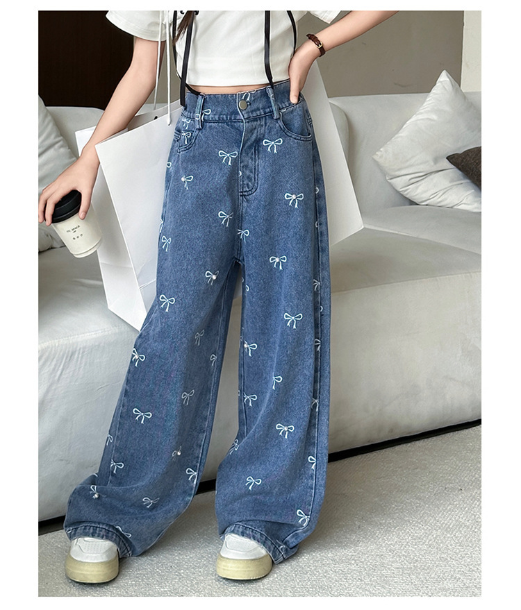 소녀 청바지 2025 새로운 도착 활 인쇄 스트레이트 다리 바지 패션 세련된 세련된 바지 여름 바지스토어 가기