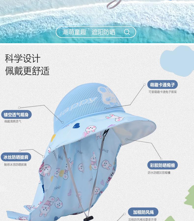 큰 챙이 목도리 귀여운 통기성 태양 모자 어부 만화 빈 탑 아기 소년과 소녀 선 스크린 1096 어린이 플러스 모자스토어 가기