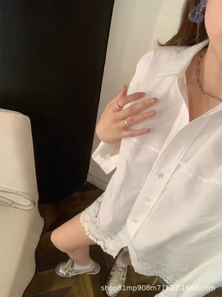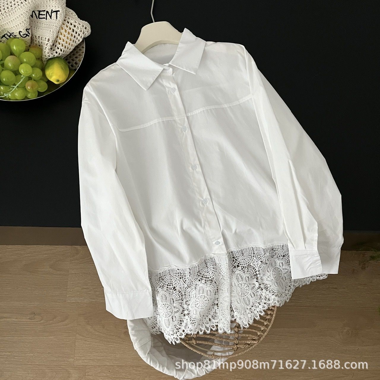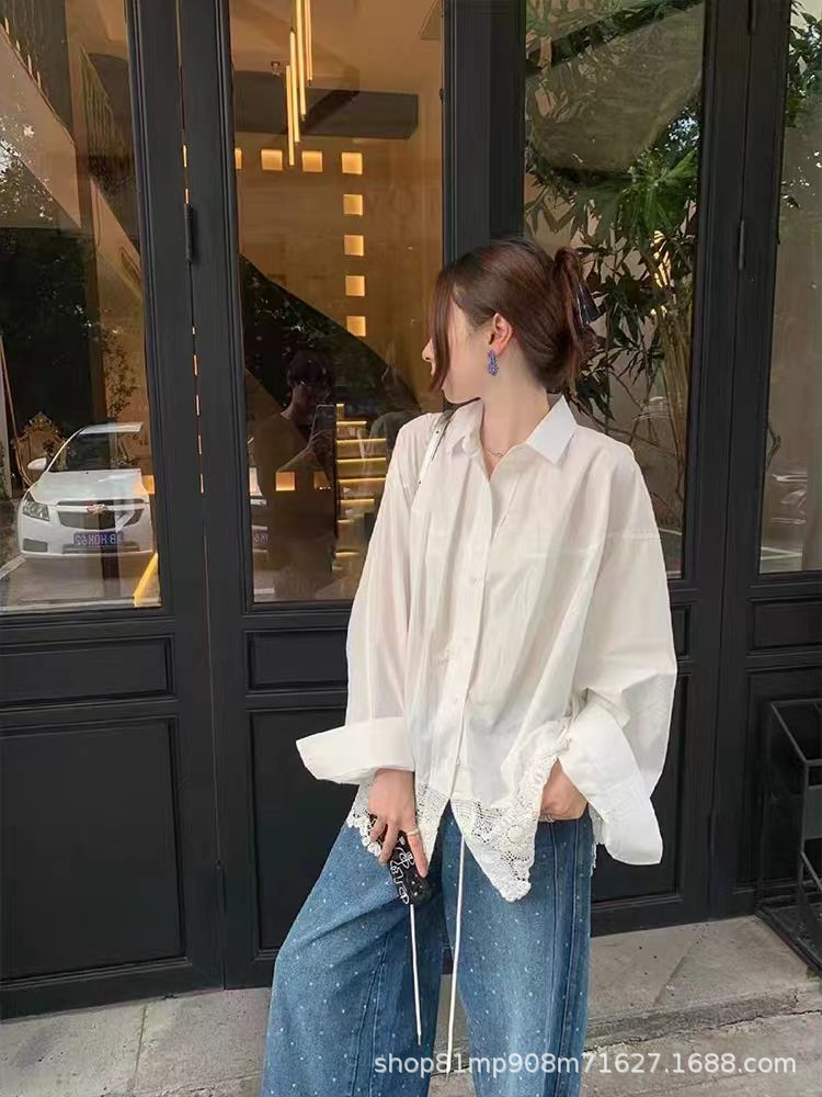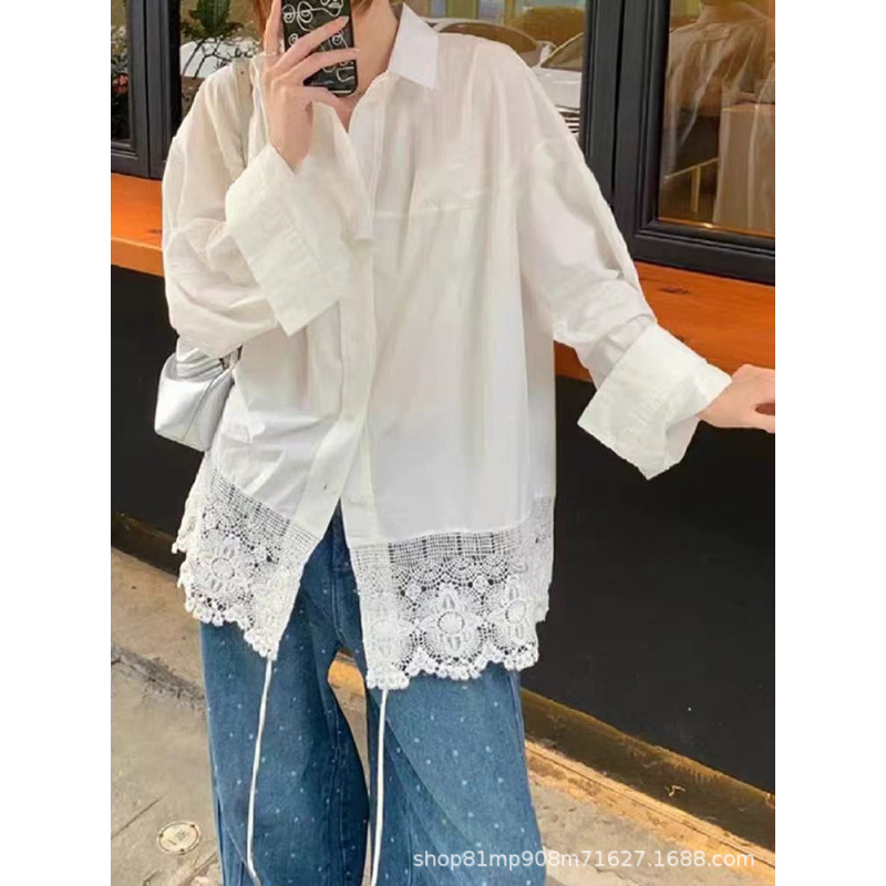 한국 동대문 이른 봄 새 셔츠 바느질 레이스 할로우 아웃 캐주얼 긴팔 유행 느슨한 디자인 센스 셔츠