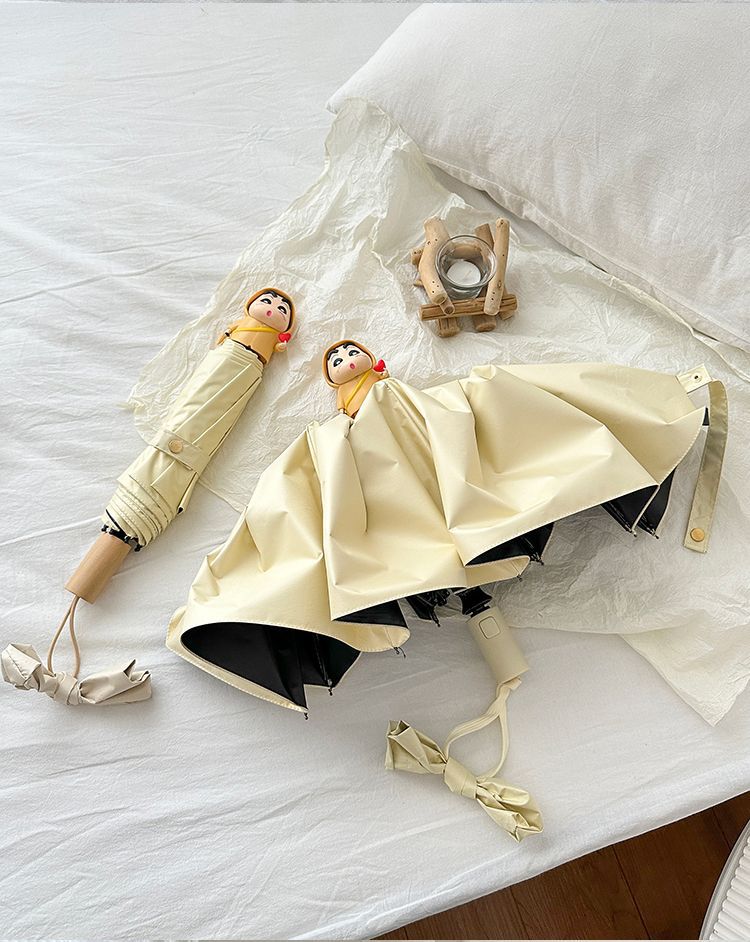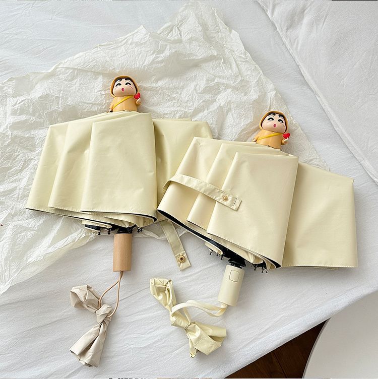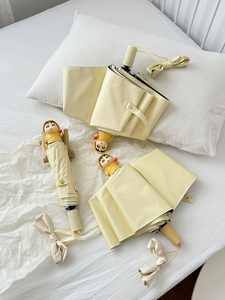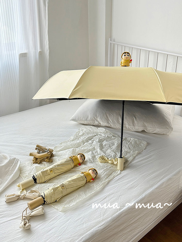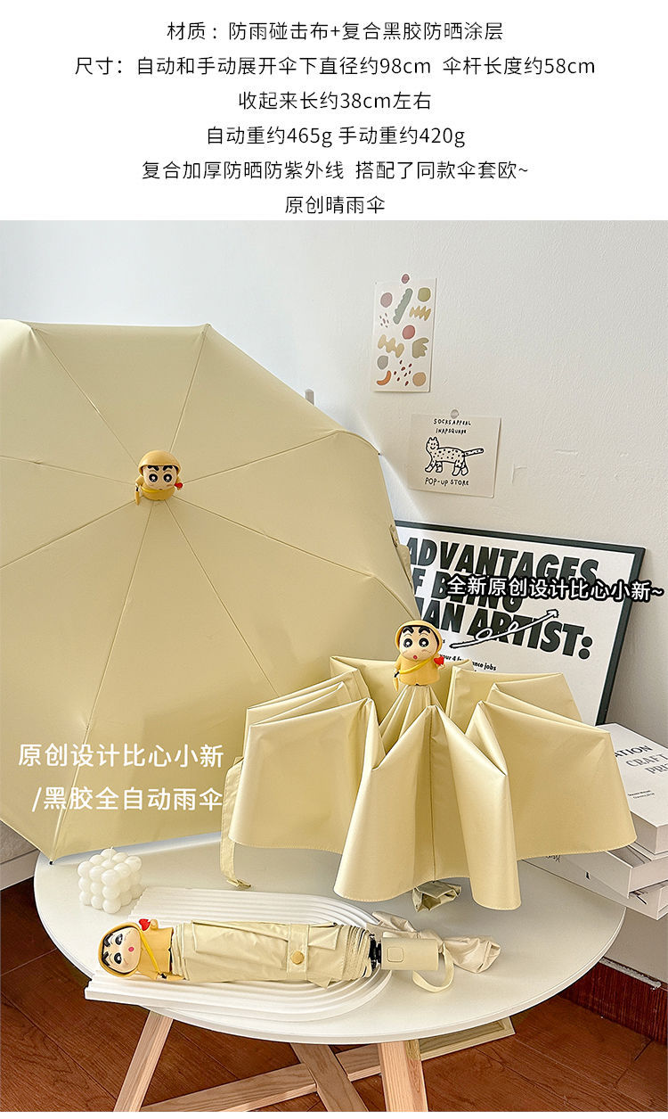 소녀 UV 자동 크레용 작은 새 검은 고무 접히는 우산 맑고 비오는 이중 사용 태양 우산 남자의 태양 커버스토어 가기