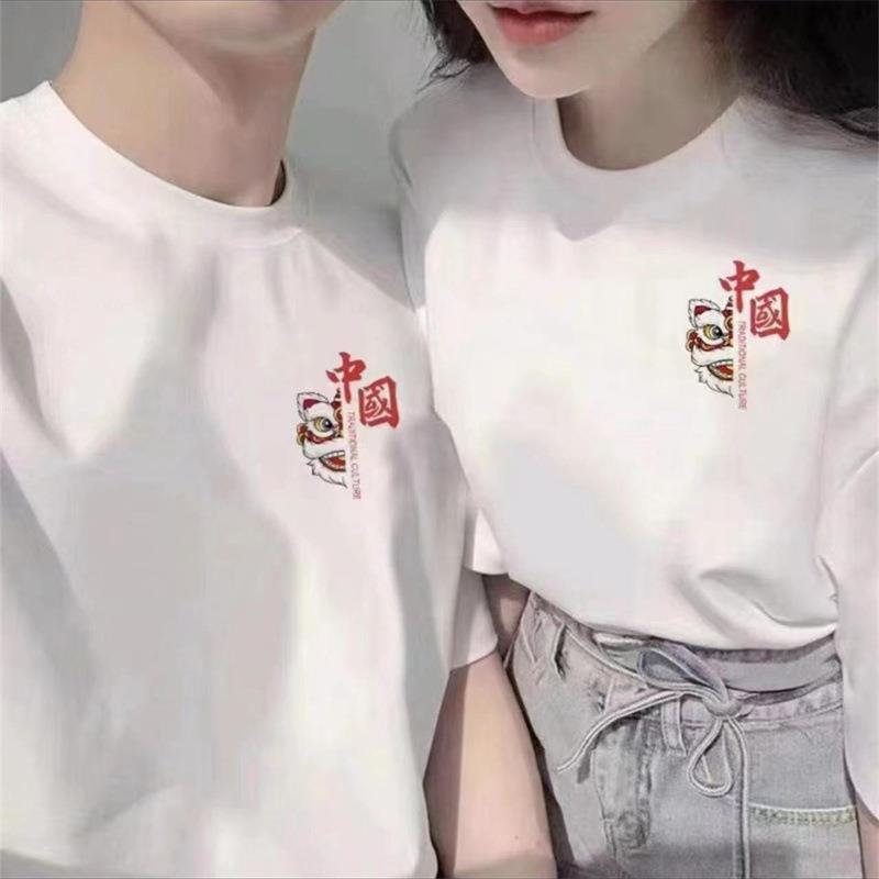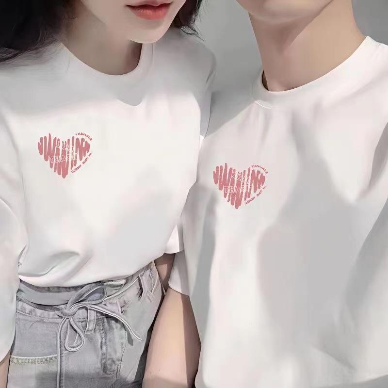 남성과 여성을 위한 흰색 반팔 티셔츠, 여름 신입생 반팔 커플 스타일 바닥 셔츠, 한국 스타일 캐주얼 티셔츠 트렌드스토어 가기