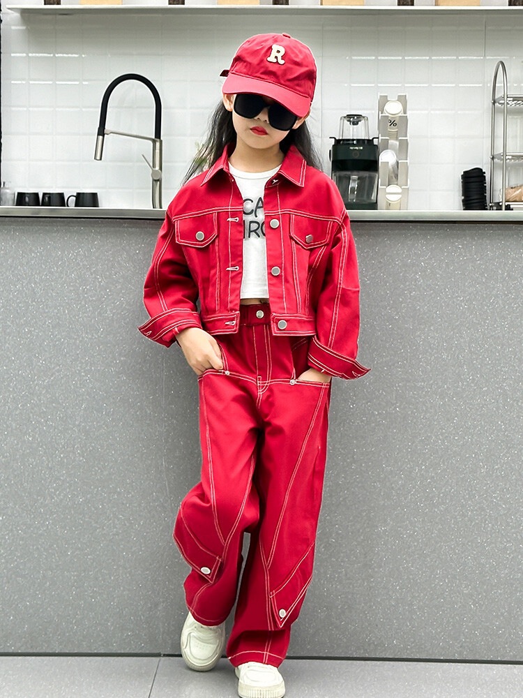 소녀 툴링 세트 2025 봄과 가을 새로운 어린이 패션 성격 한국 팬 어린이 데님 투피스 세트 봄스토어 가기