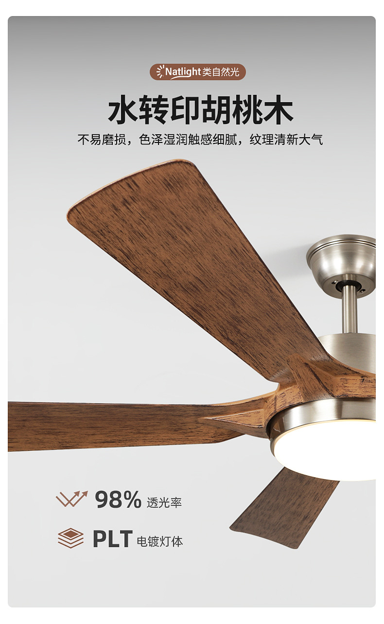 팬 라이트 2025 새로운 호두 컬러 레스토랑 팬 통합 라이트 주파수 변환 대형 바람 천장 팬 샹들리에