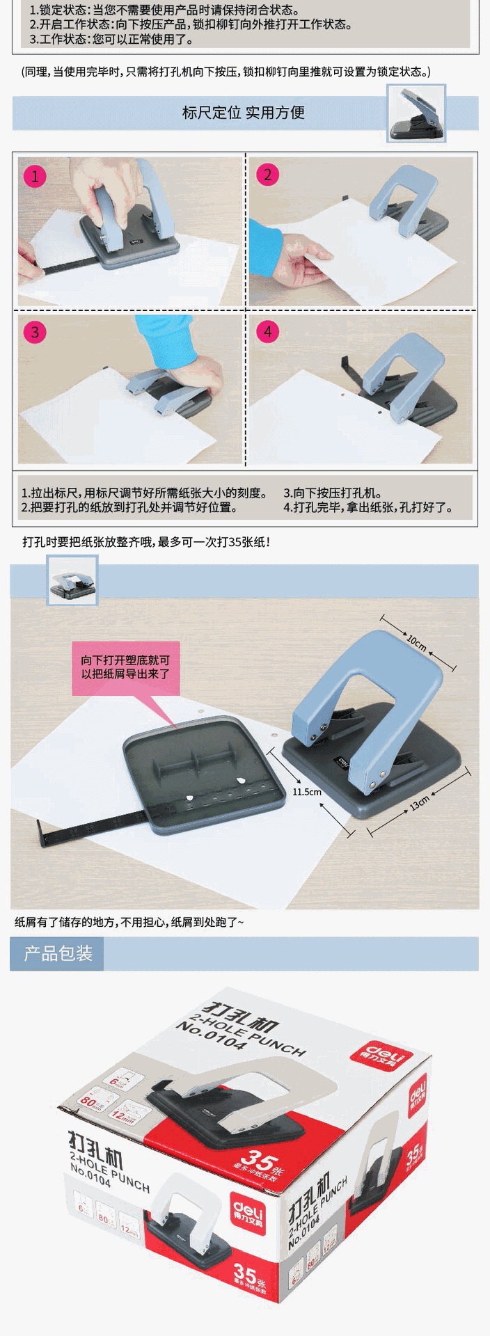 델리 0104 펀처 2 홀 종이 펀처 수동 펀처 루스 리프 폴더 학생 바인딩 클립스토어 가기