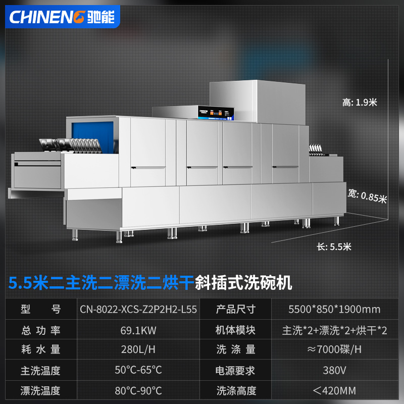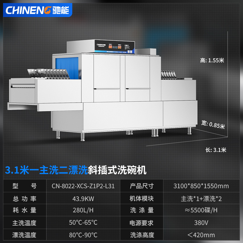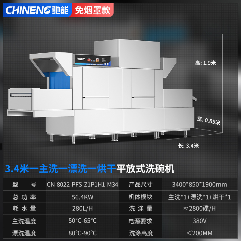 Chineng 자동 상용 식기 세척기 대형 학교 매점 전골 소독 및 건조 통합 긴 라인 식기 세척기스토어 가기