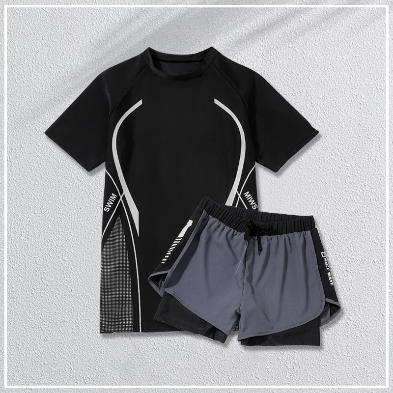 수영복 남성 여름 방황 플러스 사이즈 느슨한 더블 레이어 수영 트렁크 태양 보호 온천 남성 수영복 세트 국경스토어 가기