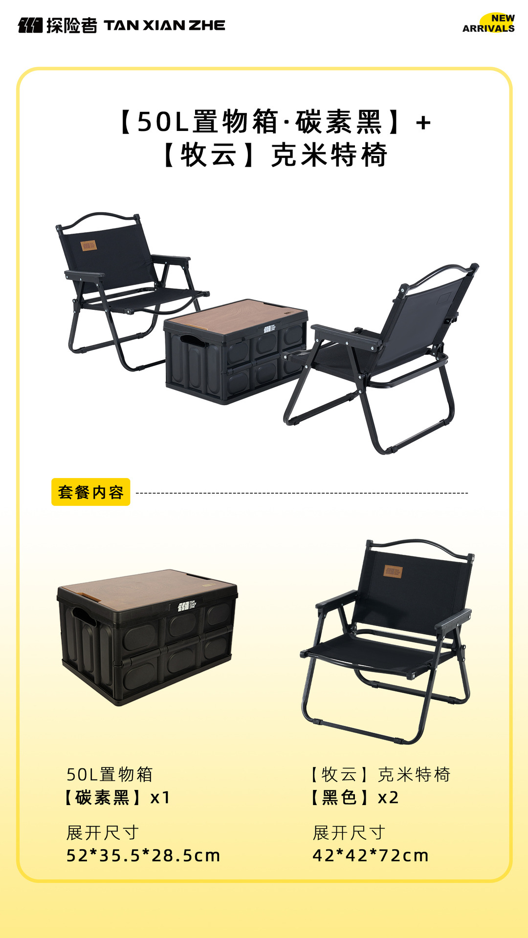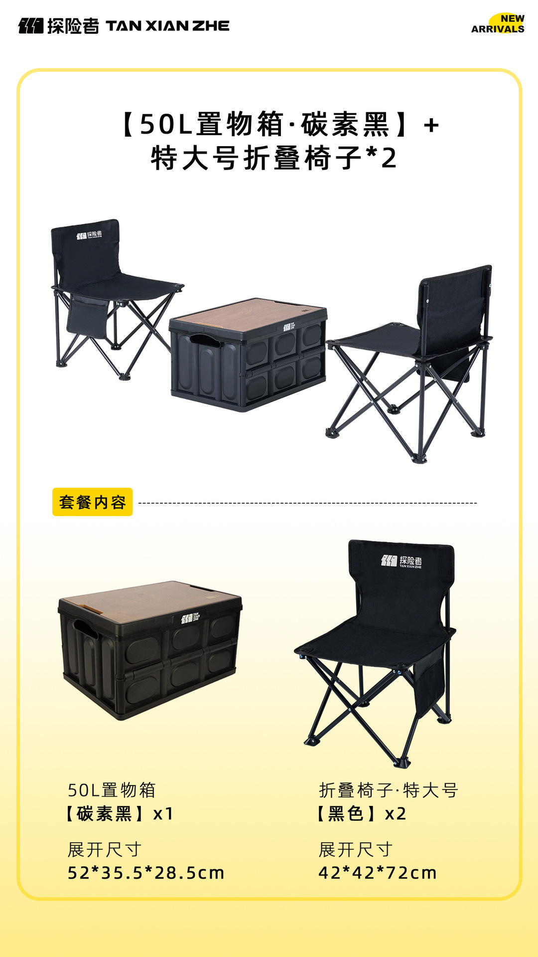 • [50L 더블 체어 패키지] 수납 상자 + 대형 검정색 의자*2