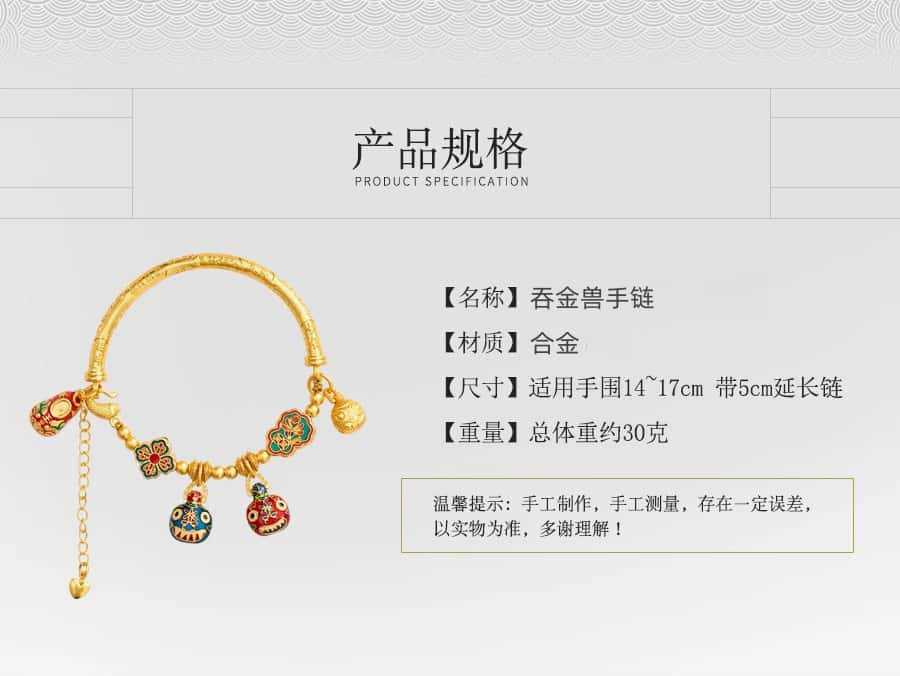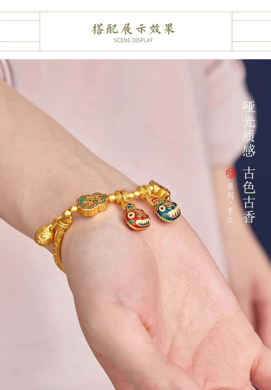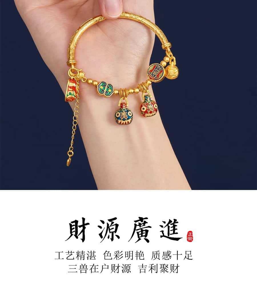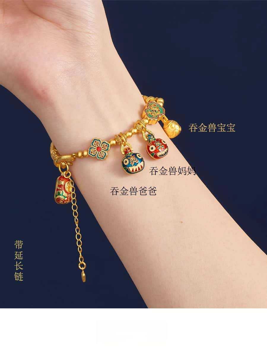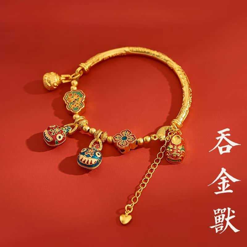 새로운 중국 스타일 국가 패션 고대 스타일 팔찌 빛 럭셔리 틈새 섬세한 에나멜 골드 삼키는 야수 하프 팔찌 돈 전송 팔찌스토어 가기
