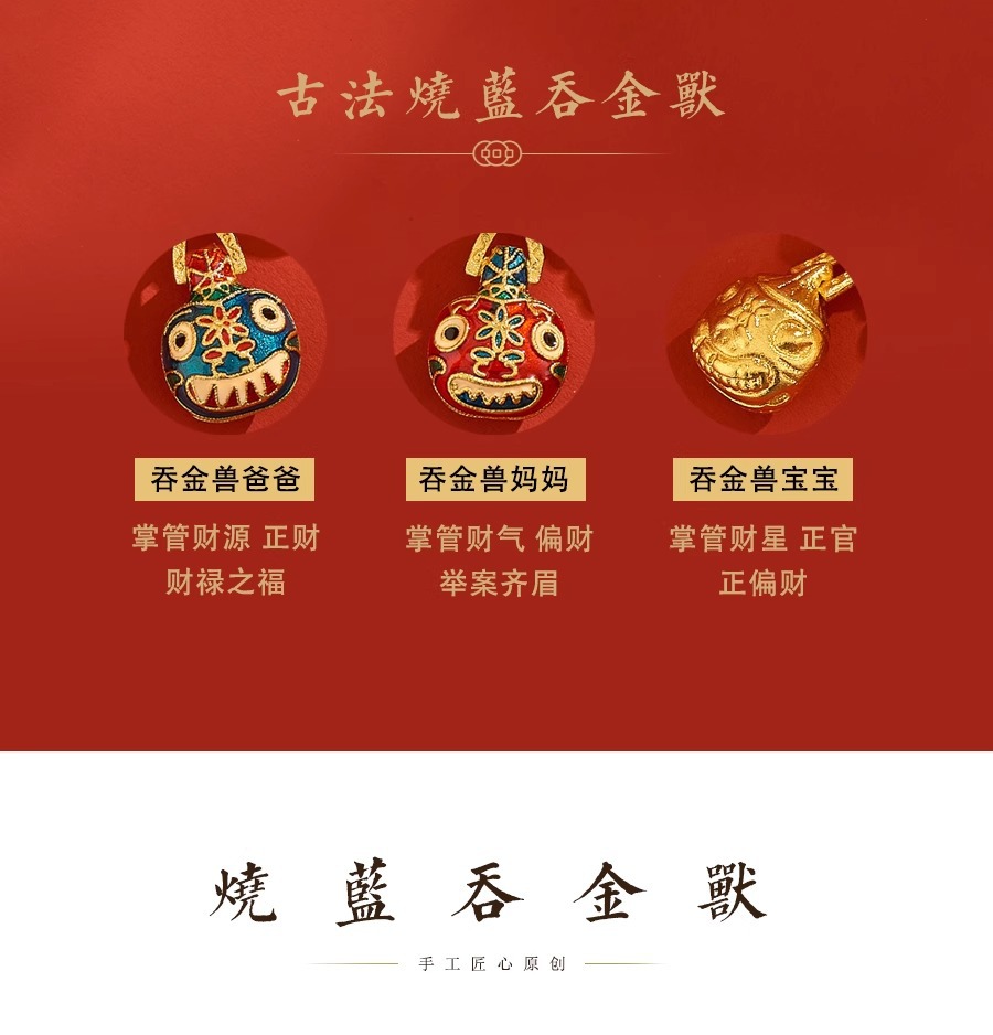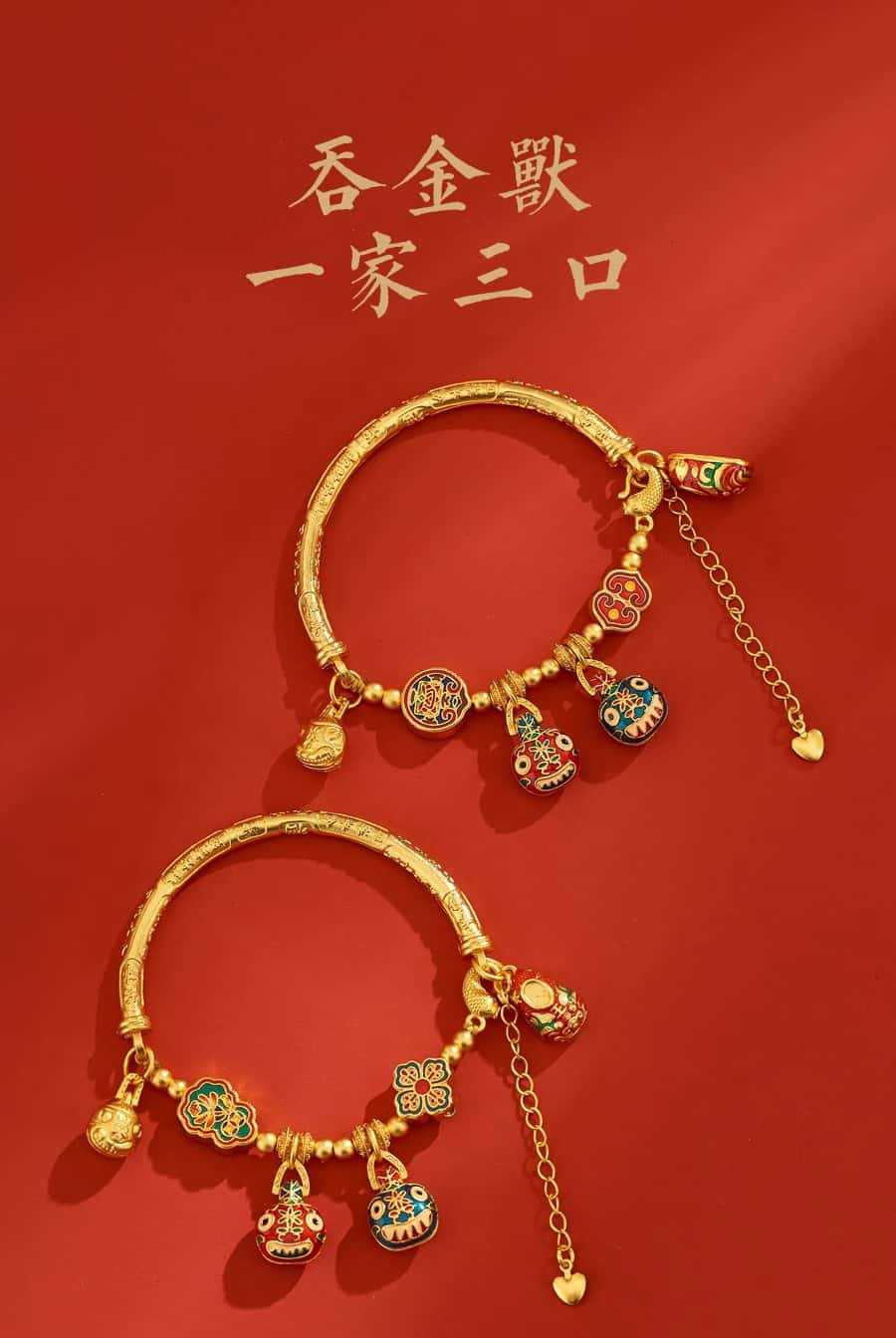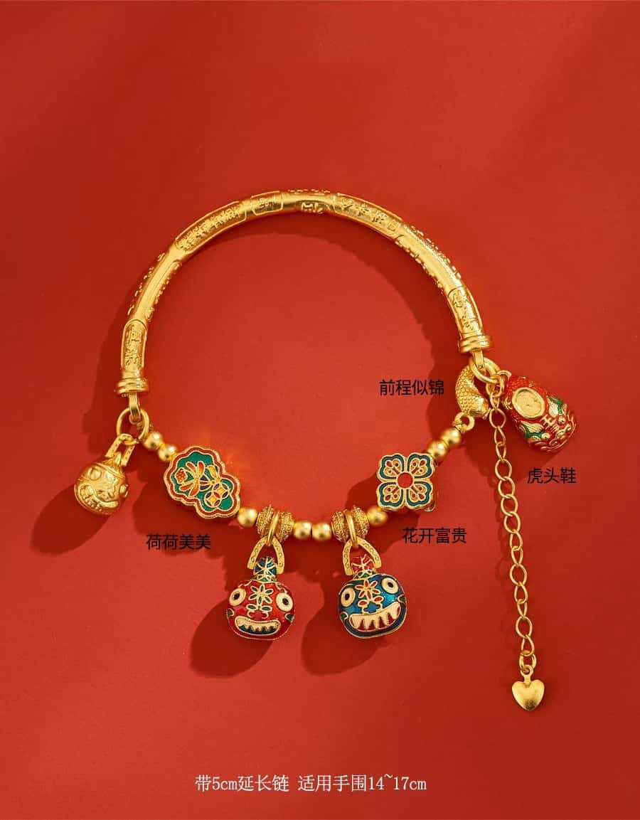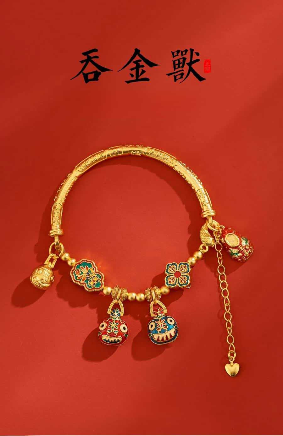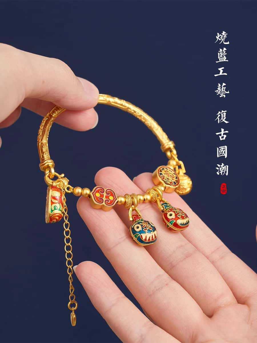 새로운 중국 스타일 국가 패션 고대 스타일 팔찌 빛 럭셔리 틈새 섬세한 에나멜 골드 삼키는 야수 하프 팔찌 돈 전송 팔찌스토어 가기