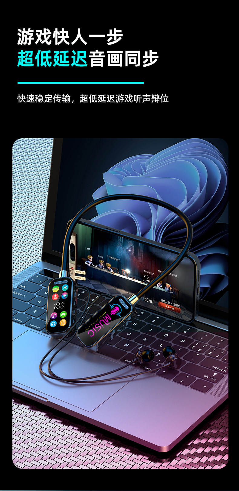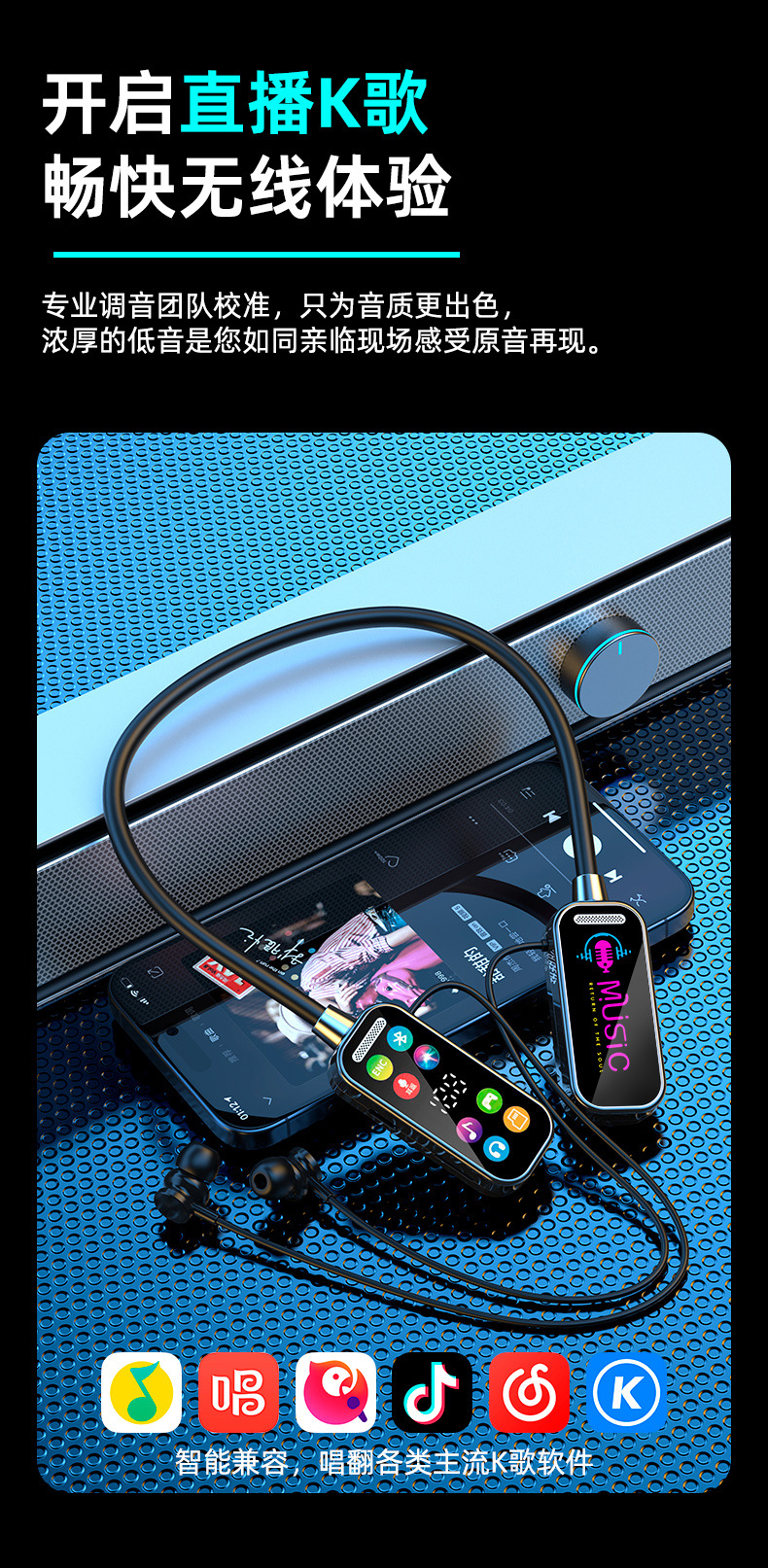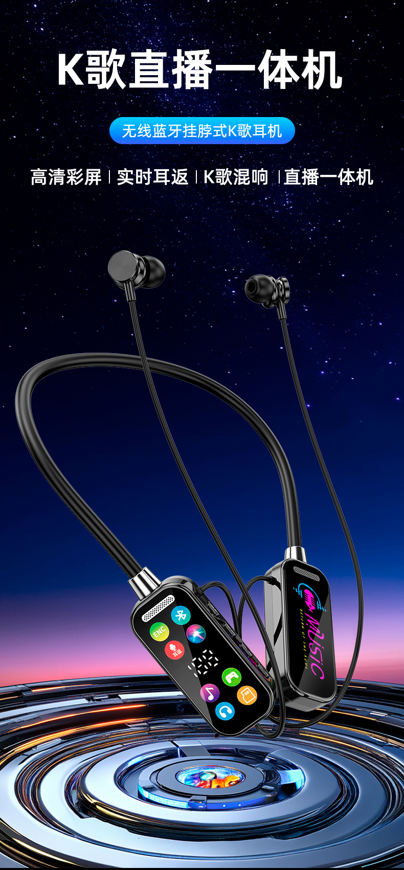 새로운 K 노래 귀 반환 컬러 스크린 목 교수형 무선 블루투스 헤드셋 교수형 목 아름다운 소리 슈퍼 긴 대기 유니버설