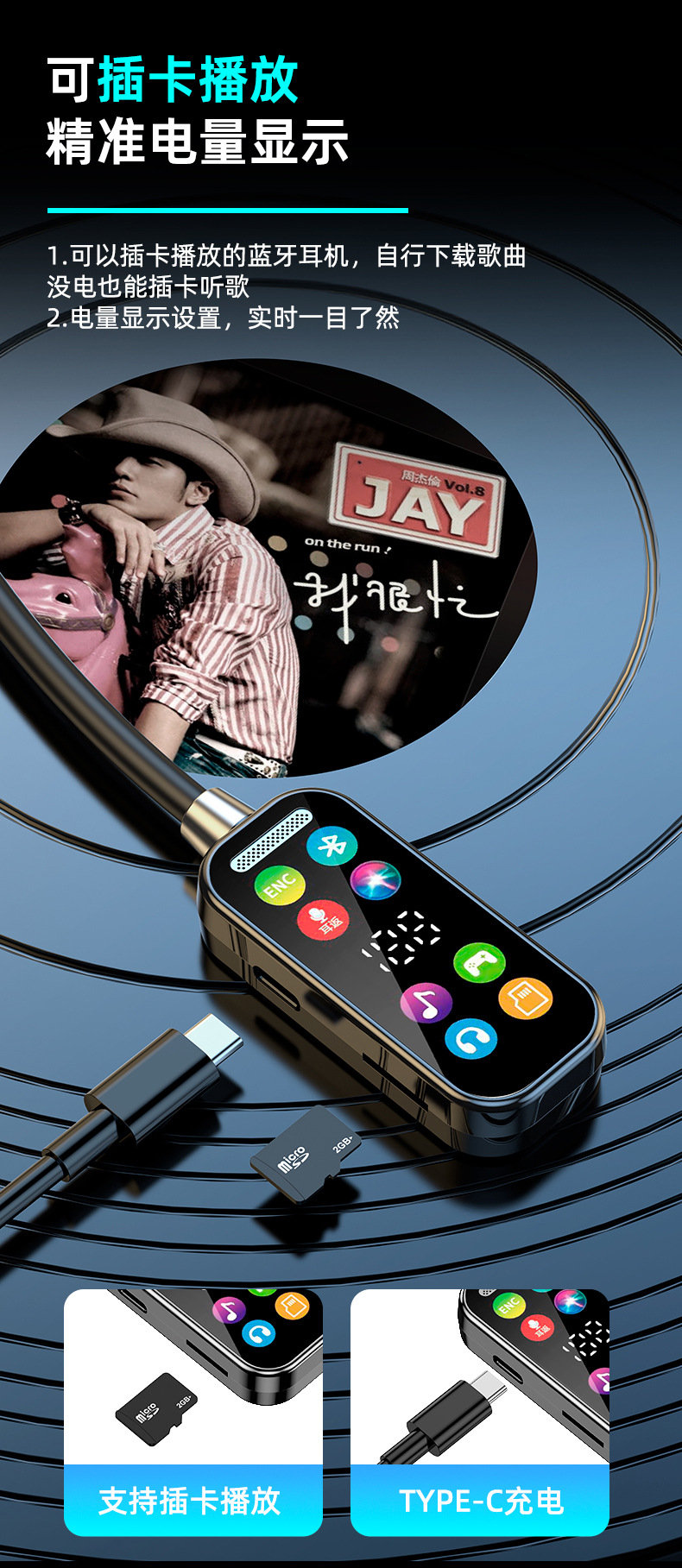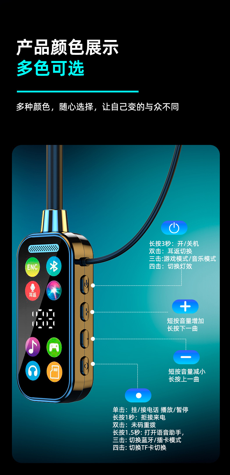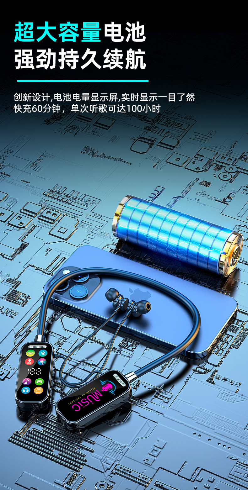 새로운 K 노래 귀 반환 컬러 스크린 목 교수형 무선 블루투스 헤드셋 교수형 목 아름다운 소리 슈퍼 긴 대기 유니버설