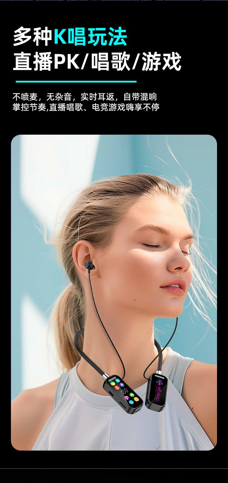 새로운 K 노래 귀 반환 컬러 스크린 목 교수형 무선 블루투스 헤드셋 교수형 목 아름다운 소리 슈퍼 긴 대기 유니버설스토어 가기