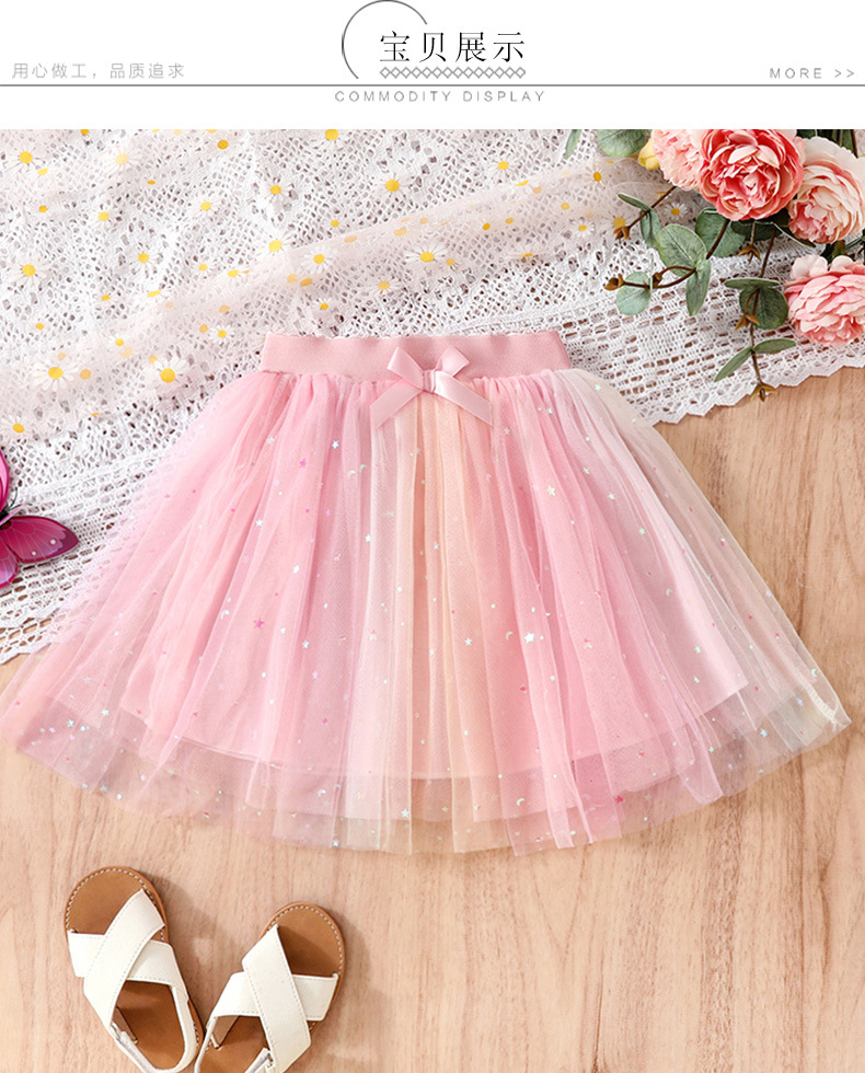아동 의류 도매 소녀 다채로운 스팽글 보우 스커트 여름 짧은 치마 푹신한 어린 소녀 유행 공주 스커트스토어 가기