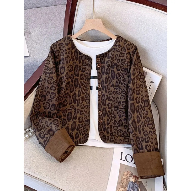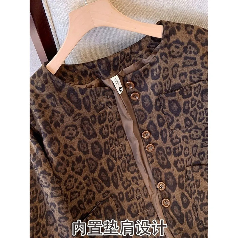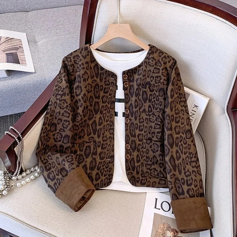 레오파드 무늬 짧은 바느질 대비 컬러 샤넬 스타일 코트 여성의 봄과 가을 새로운 마일 라드 하이 엔드 웨스턴 스타일 탑 재킷스토어 가기