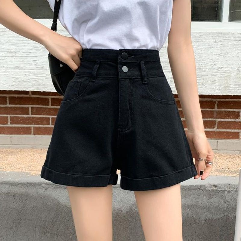 높은 허리 데님 반바지 여자 여름 2025 새로운 느슨한 슬림 넓은 다리 바지 홉 핫 바지 여자 바지스토어 가기