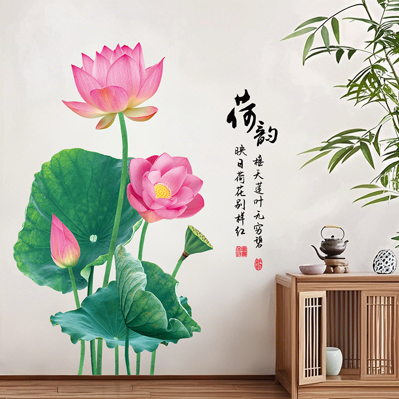 거실 연꽃 그림자 Yiyun 실내 침실 욕실 창 스티커 자체 접착 벽지를 위한 신제품 연꽃 벽 스티커스토어 가기