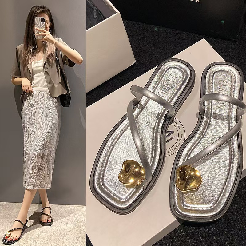화이트 로마 샌들 여성 여름 패션 실버 발가락 아우터 아름다운 원피스 하이힐 올 매치 비치 슬리퍼