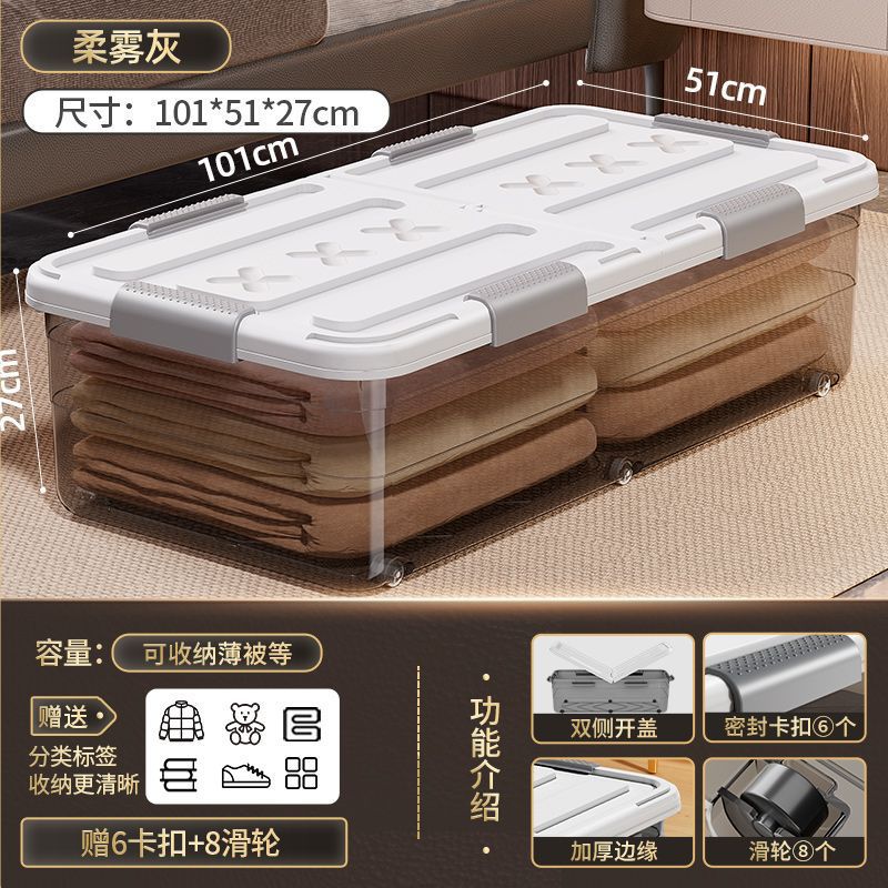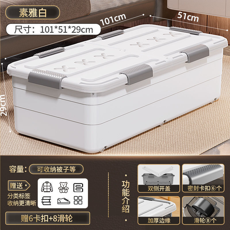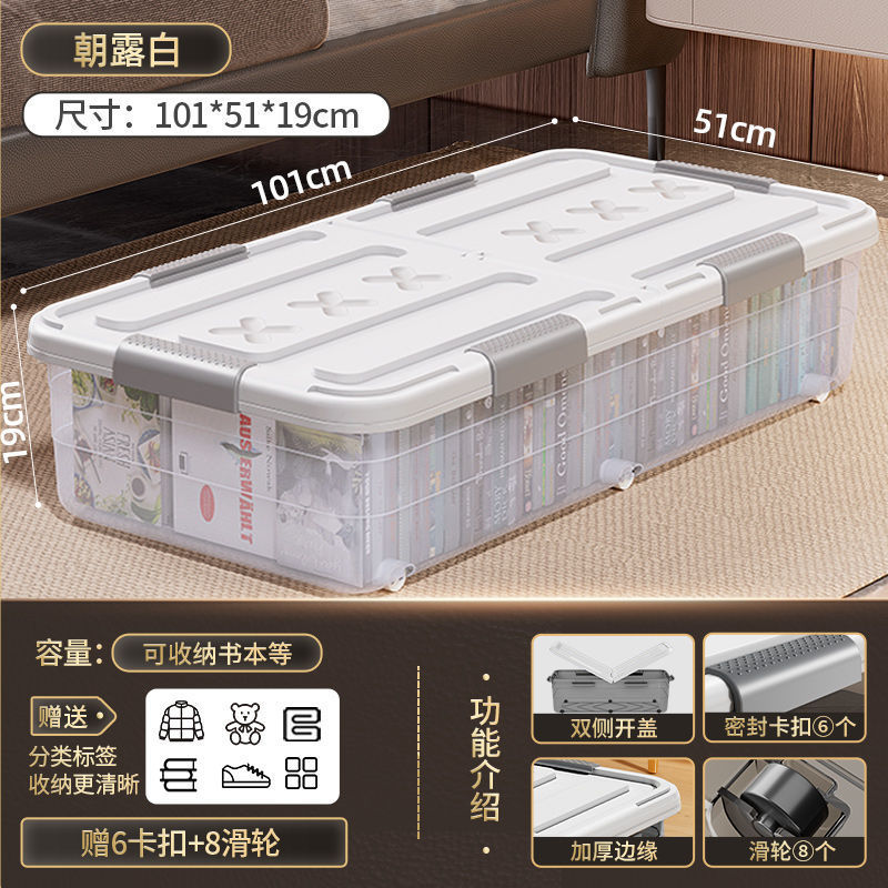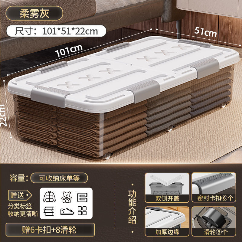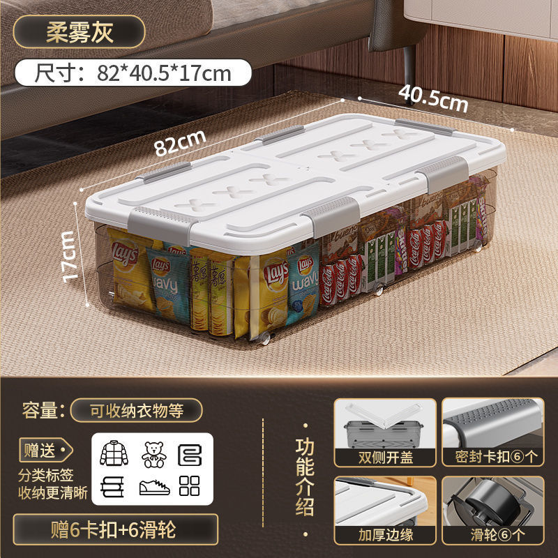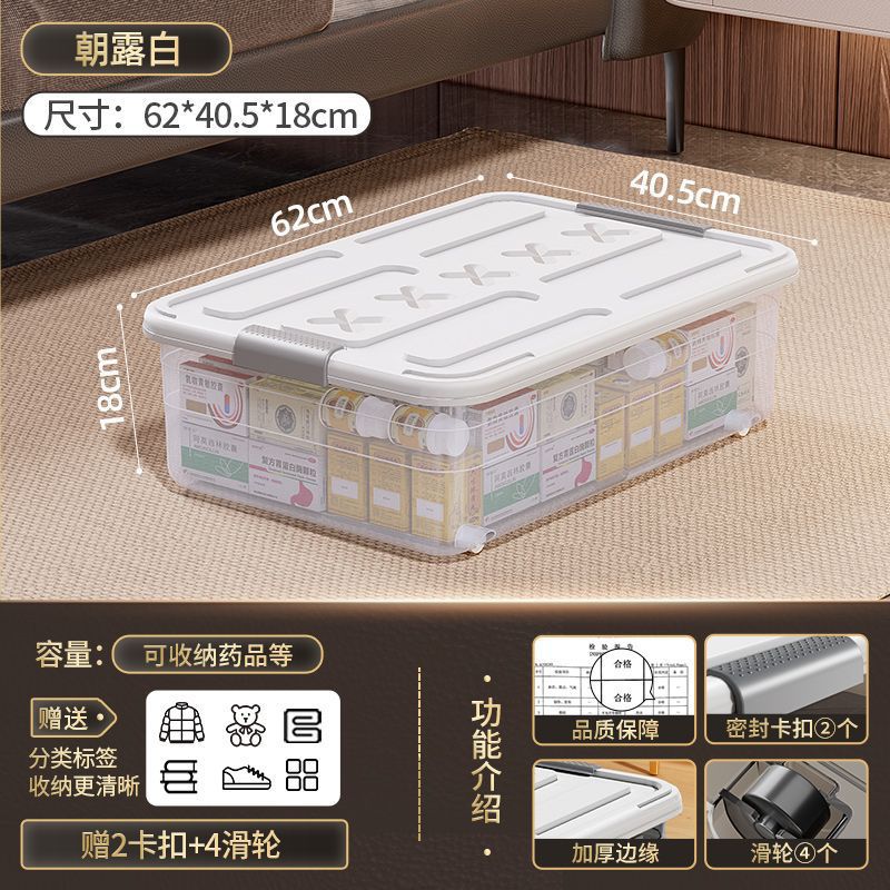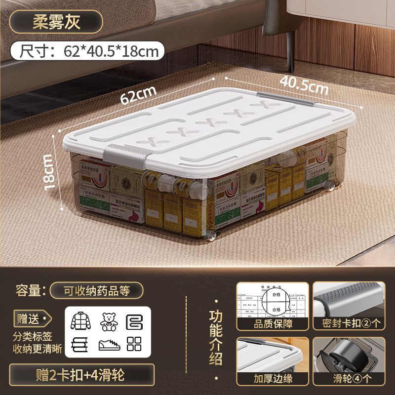 침대 저장 유물 도매 아래의 도르래 평면 저장 상자 서랍 유형 투명 마무리 상자가있는 침대 보관 상자