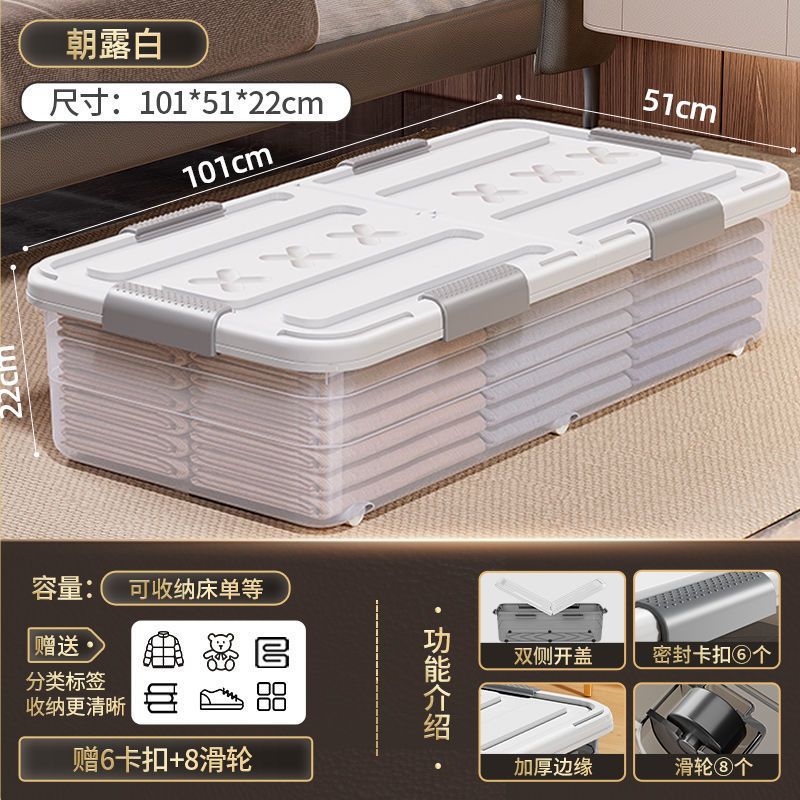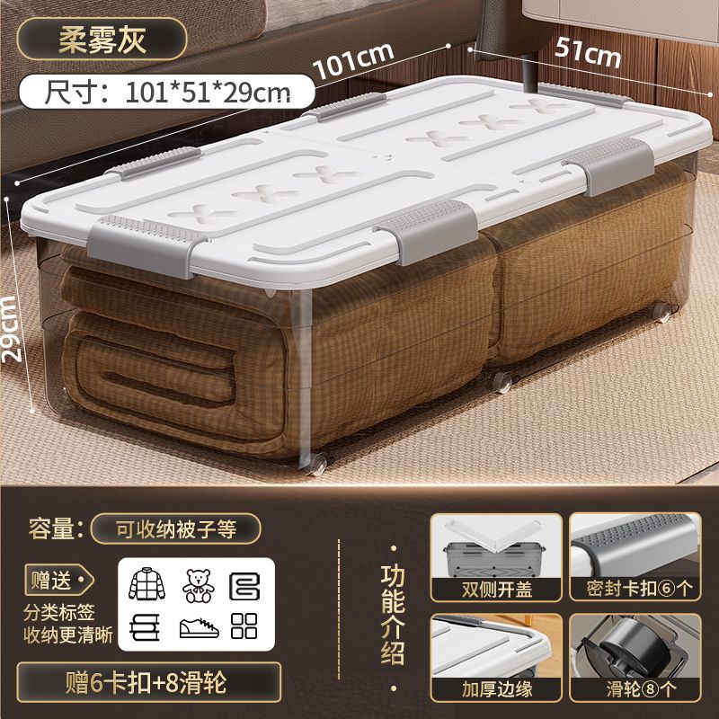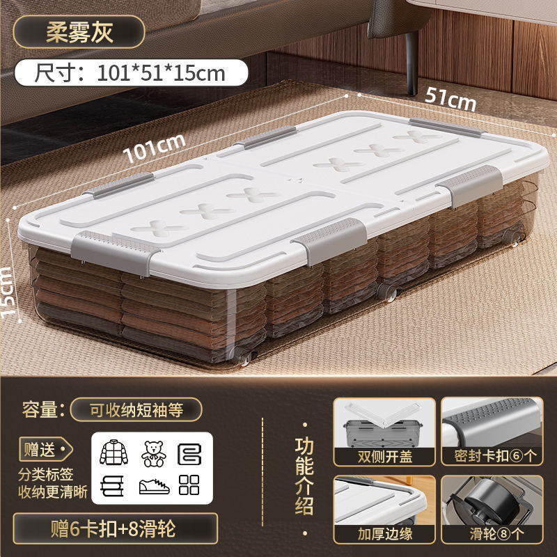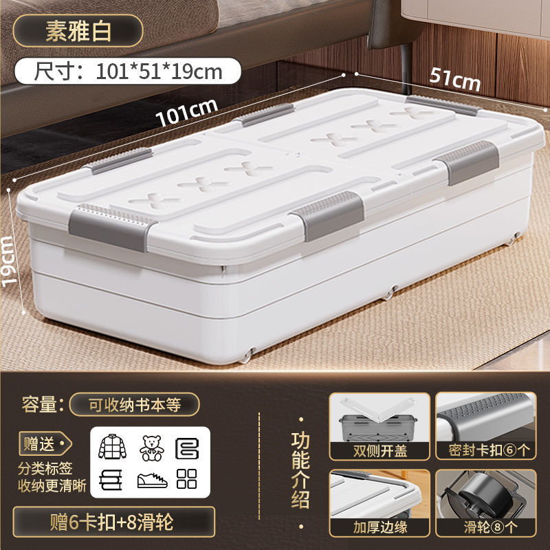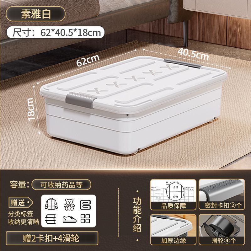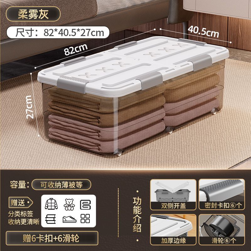 침대 저장 유물 도매 아래의 도르래 평면 저장 상자 서랍 유형 투명 마무리 상자가있는 침대 보관 상자