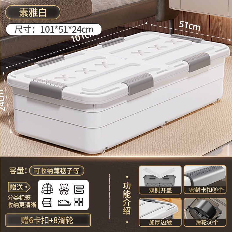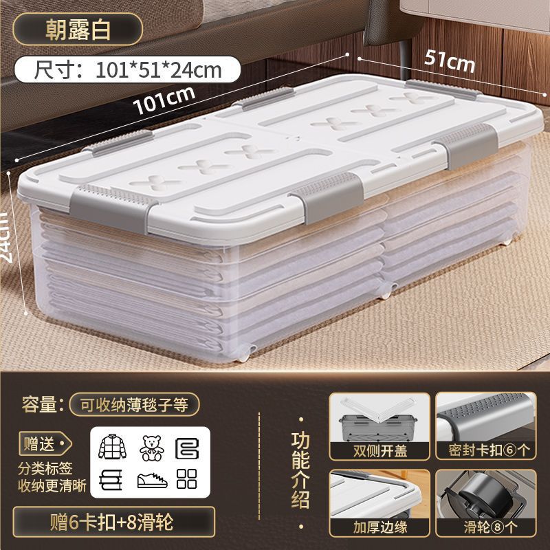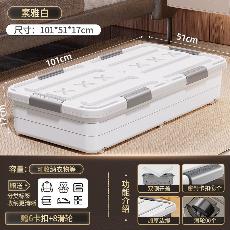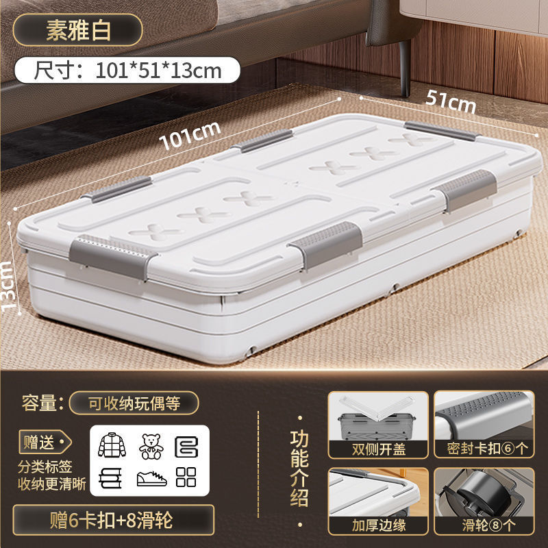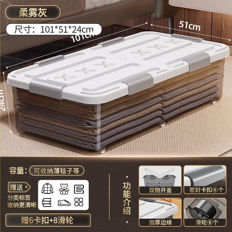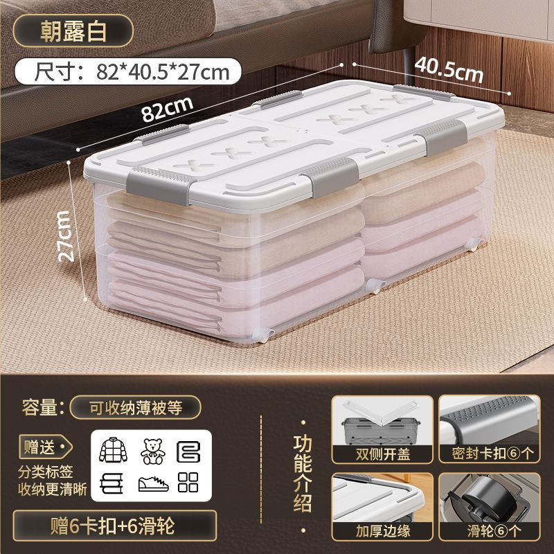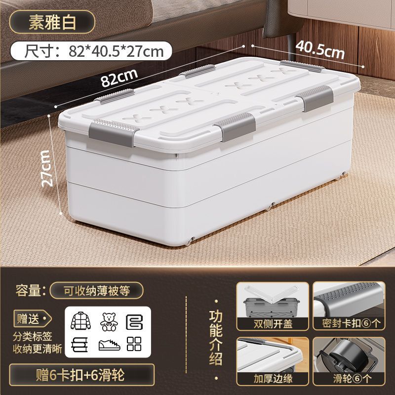 침대 저장 유물 도매 아래의 도르래 평면 저장 상자 서랍 유형 투명 마무리 상자가있는 침대 보관 상자