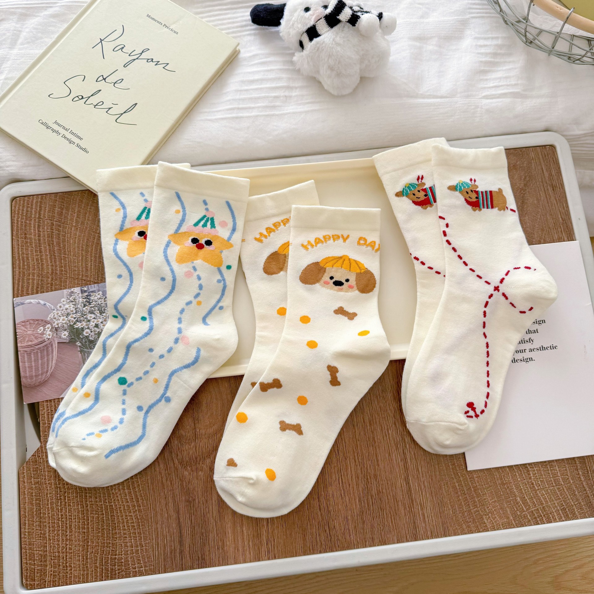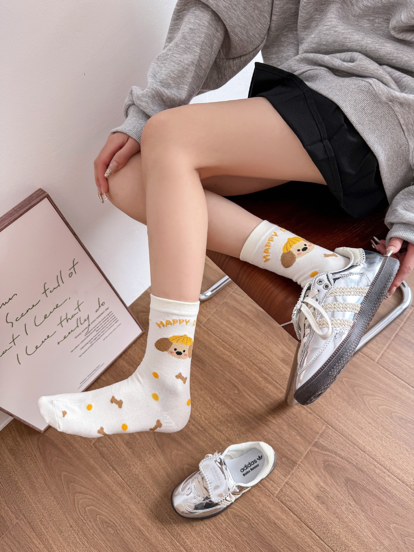 그림 개 양말 여성 우유 흰 소녀 스포츠 양말 일본식 소시지 개 크림 귀여운 미드 튜브 양말스토어 가기