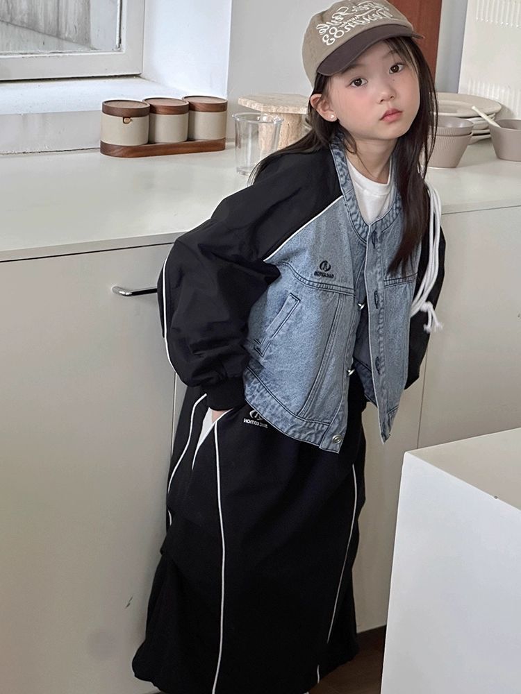 소녀 가을 코트 재킷 2025 새로운 스타일 어린이 서양식 데님 어린이 야구 세트 조수스토어 가기