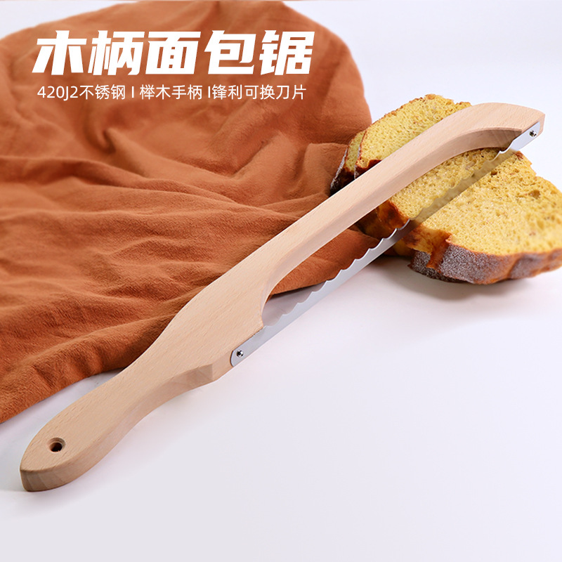 국경 간 나무 활은 슬래그 베이킹 바게트 커터없이 치아 빵 칼을 보았다.