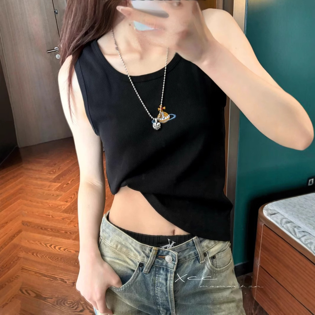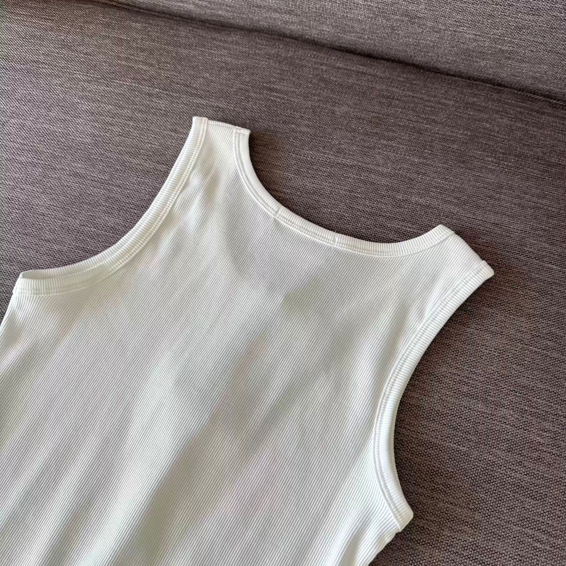 틈새 2025 봄과 여름 새로운 간단한 다채로운 자수 토성 슬림 핏 스트레치 리브 코튼 조끼 남자와 여자를위한 탑
