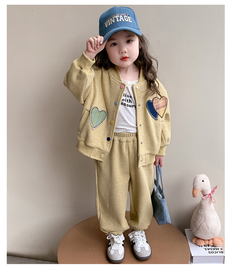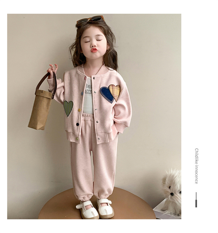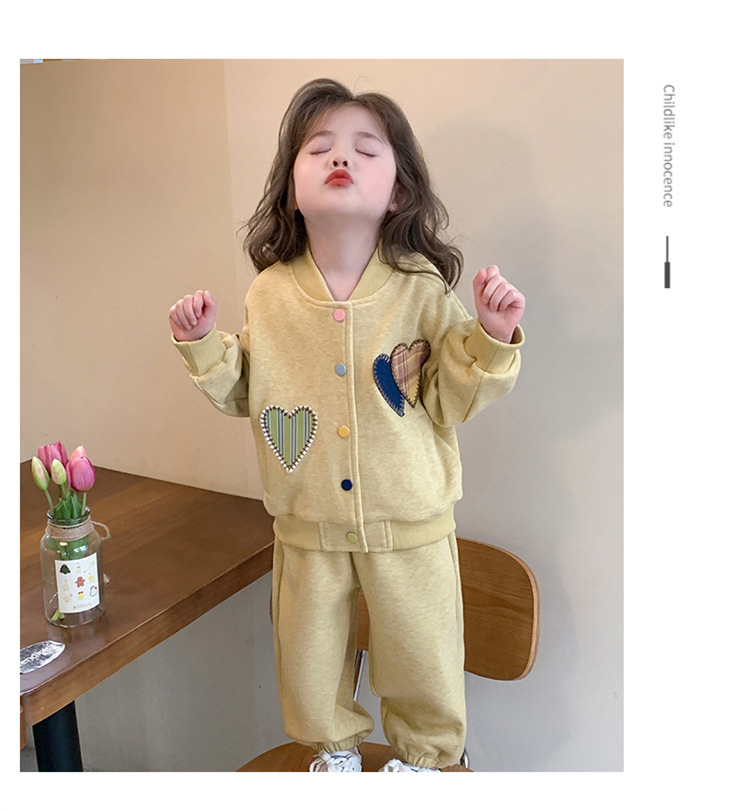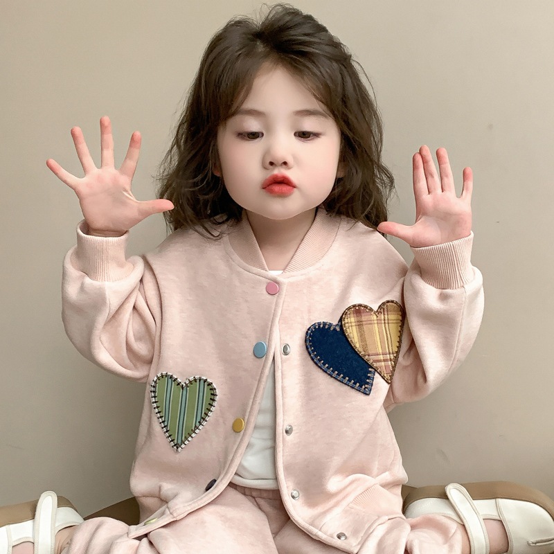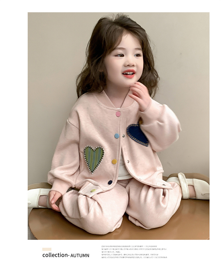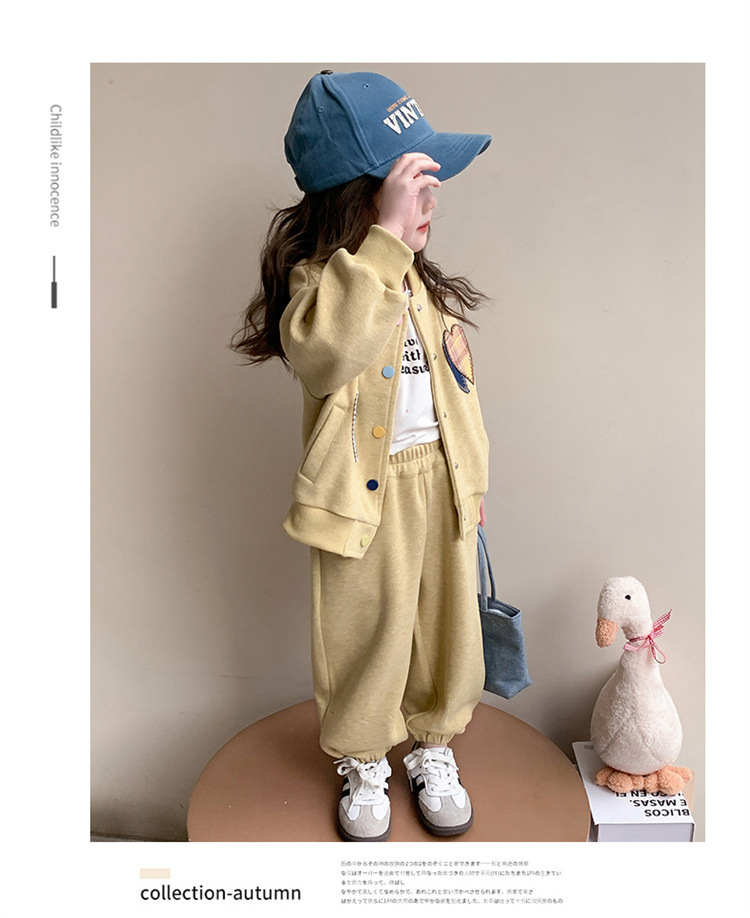 2025 새로운 가을 사랑 야구 유니폼 정장 어린이 유행 소녀 봄, 가을 유행 소녀 투피스 세트
