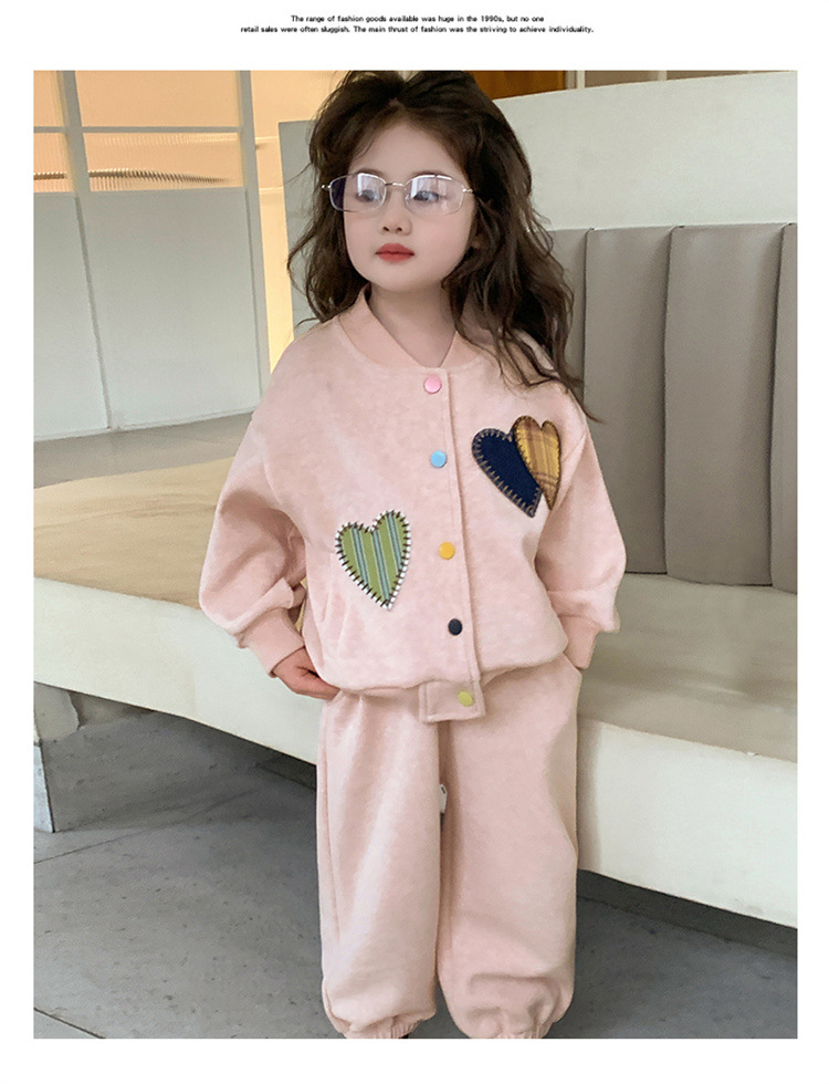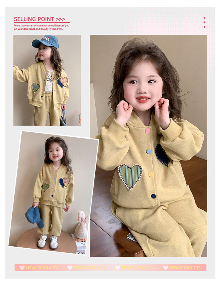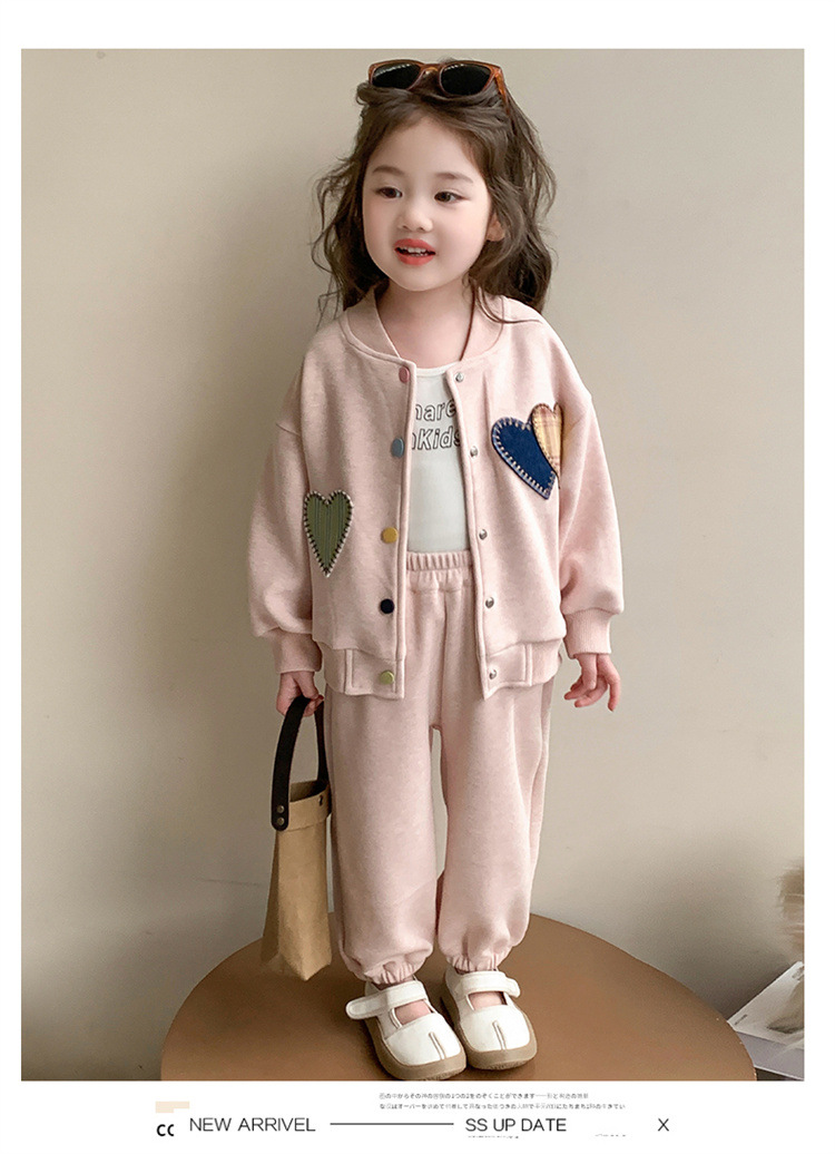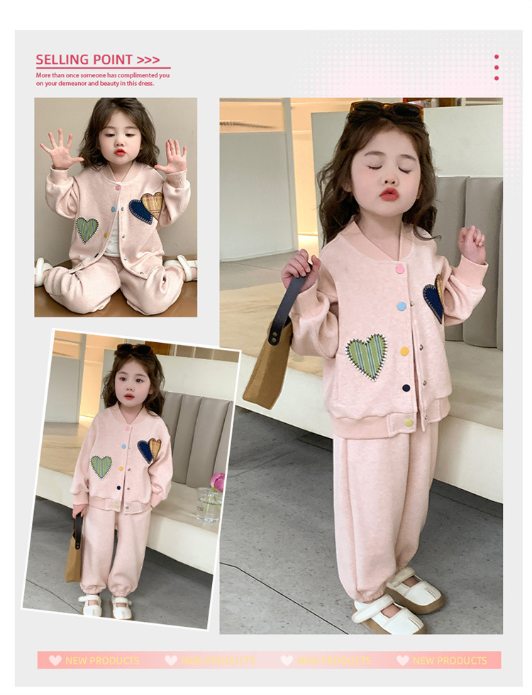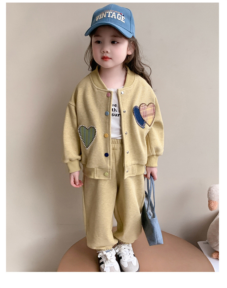 2025 새로운 가을 사랑 야구 유니폼 정장 어린이 유행 소녀 봄, 가을 유행 소녀 투피스 세트