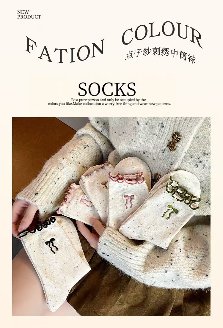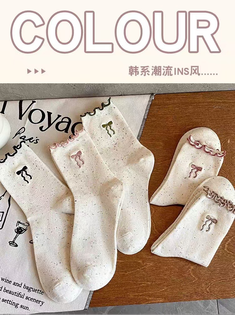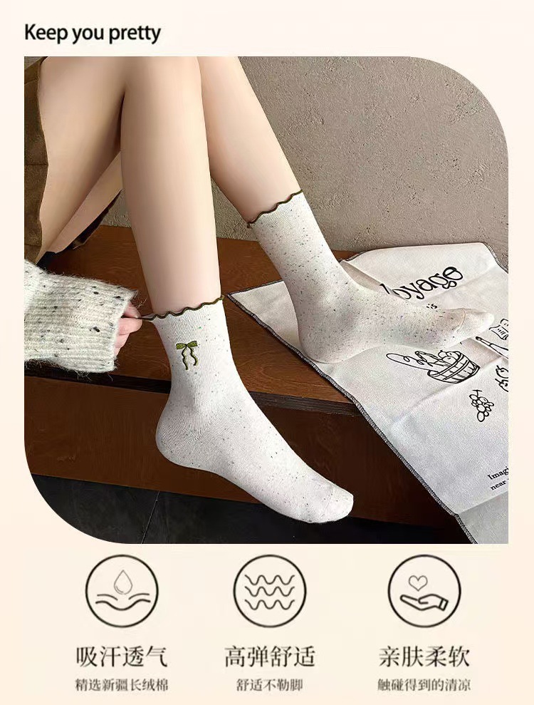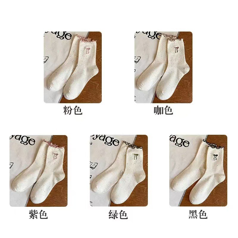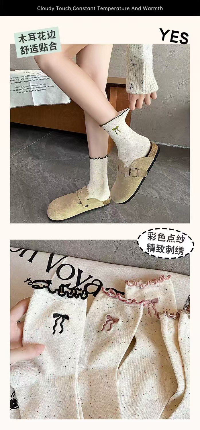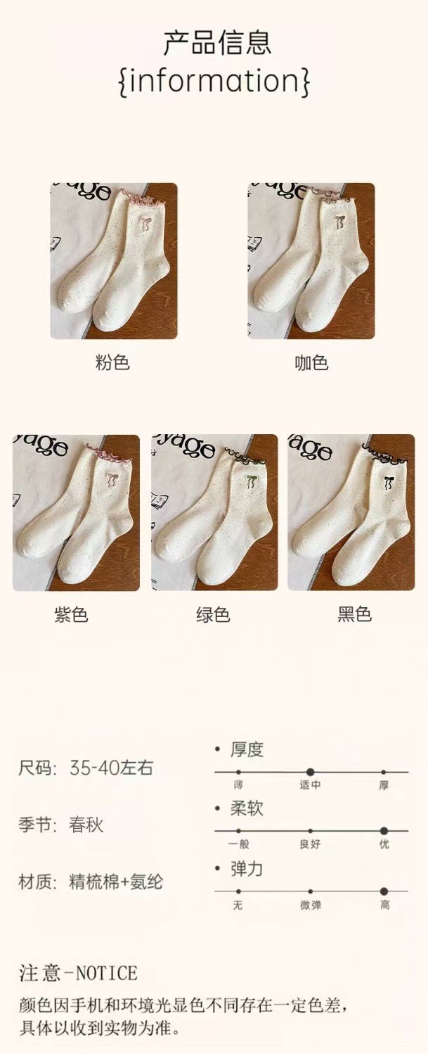 나무 귀 양말 착용 여성의 봄과 가을 중추장 보우 인 간단한 올 매치 학생 양말 달콤하고 귀여운스토어 가기