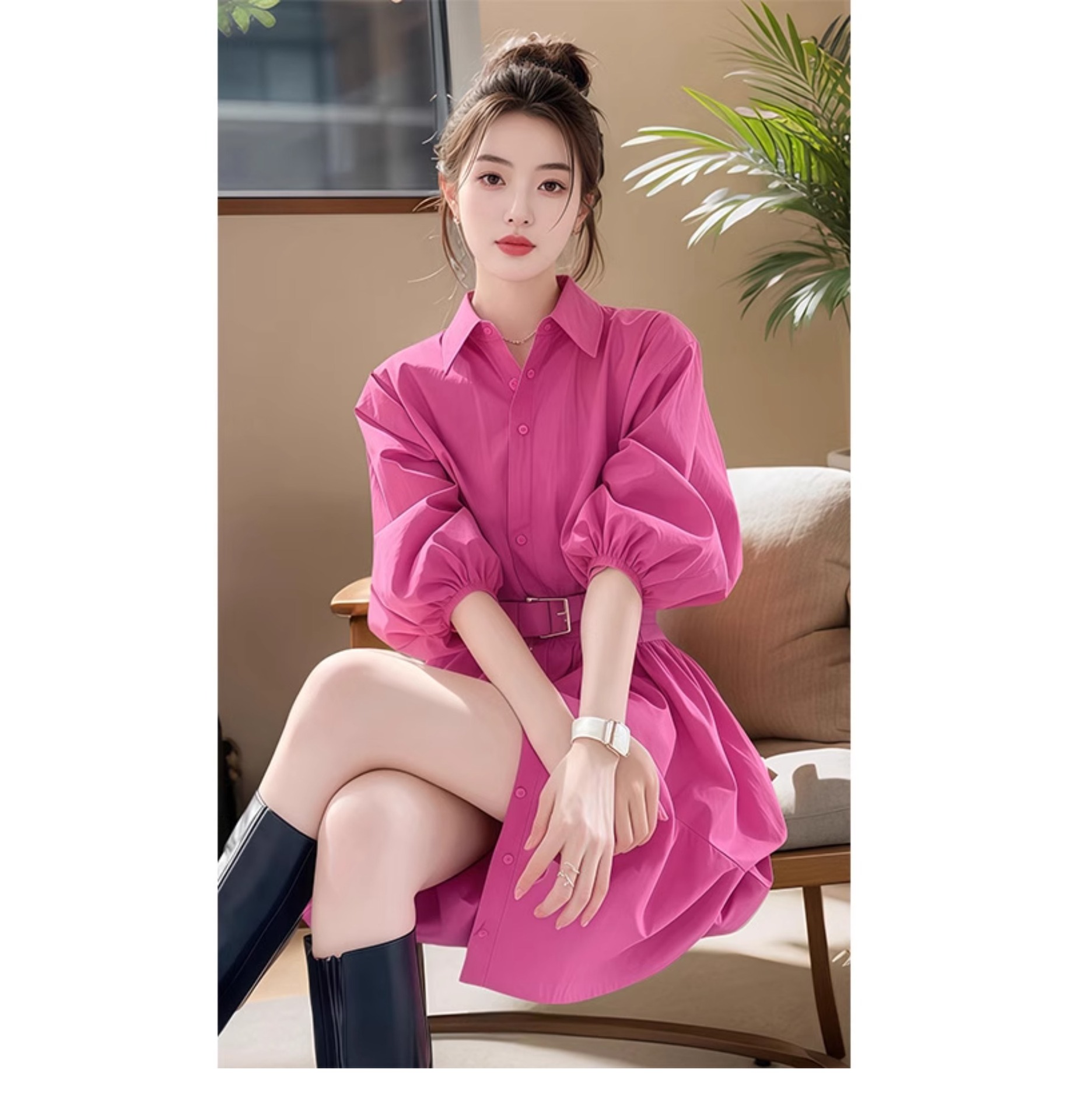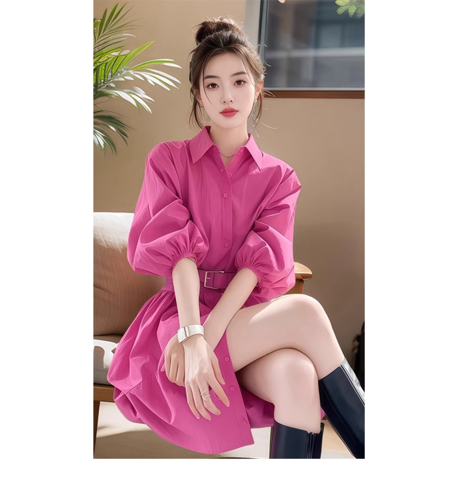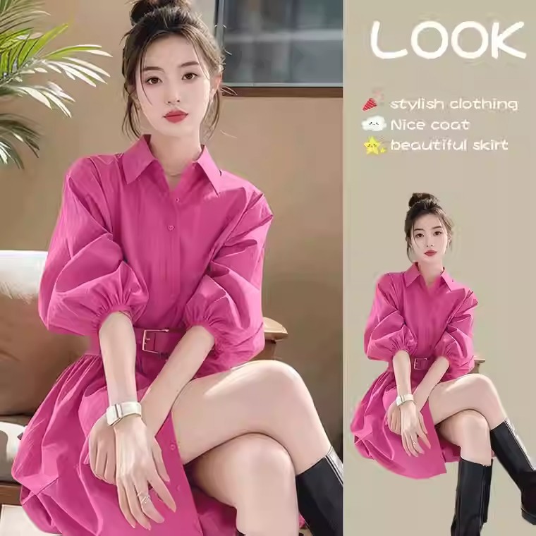 고급 슈퍼 잘 생긴 기질 패션 원피스 여성의 2025 봄 새로운 작은 셔츠 A 라인 스커트스토어 가기