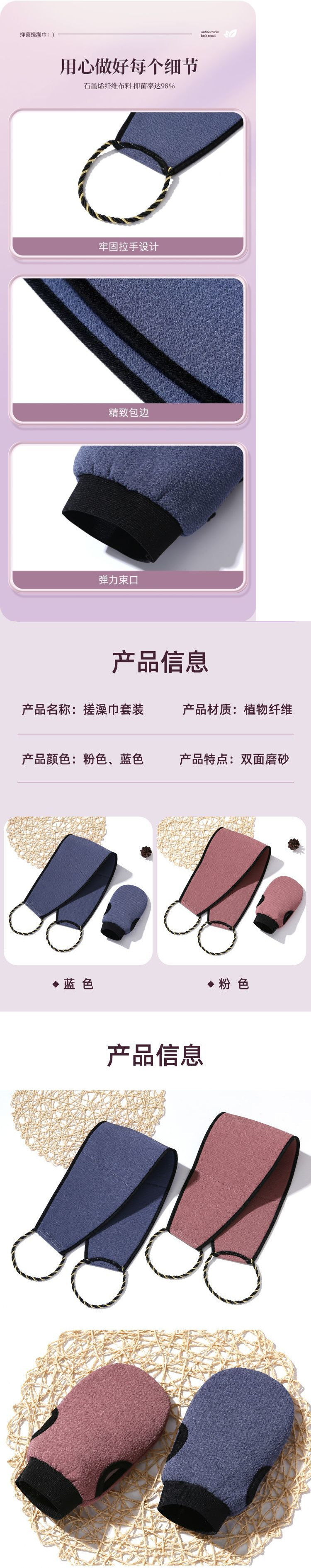 • 양면 반투명 [감색] 등받이 수건 + 목욕 수건