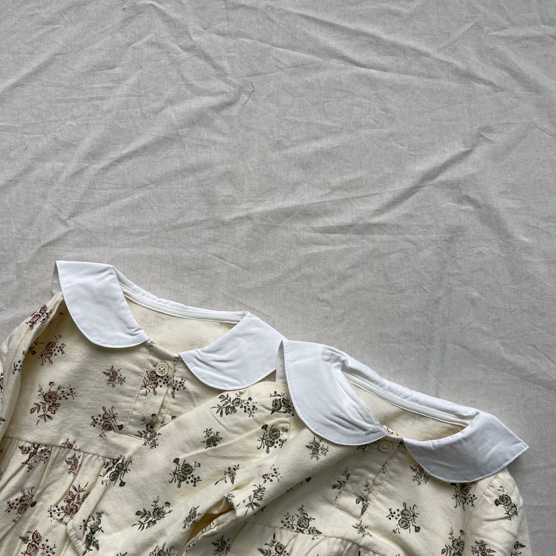 한국식 인스타그램 스타일의 네이비 옷깃 인형 셔츠 아기 소녀를위한 긴팔 주름 랜턴 삼각형 스타일 Thatbag스토어 가기