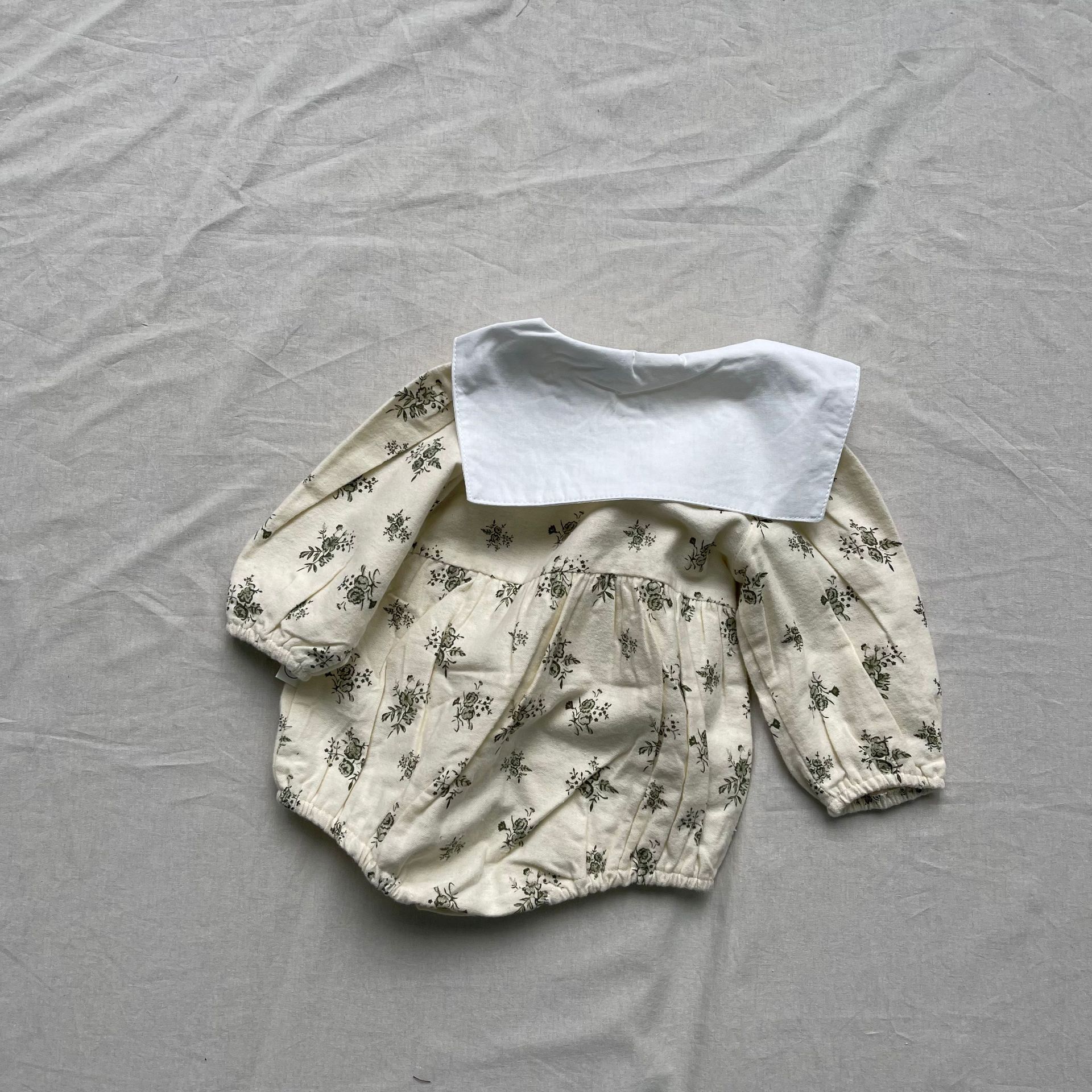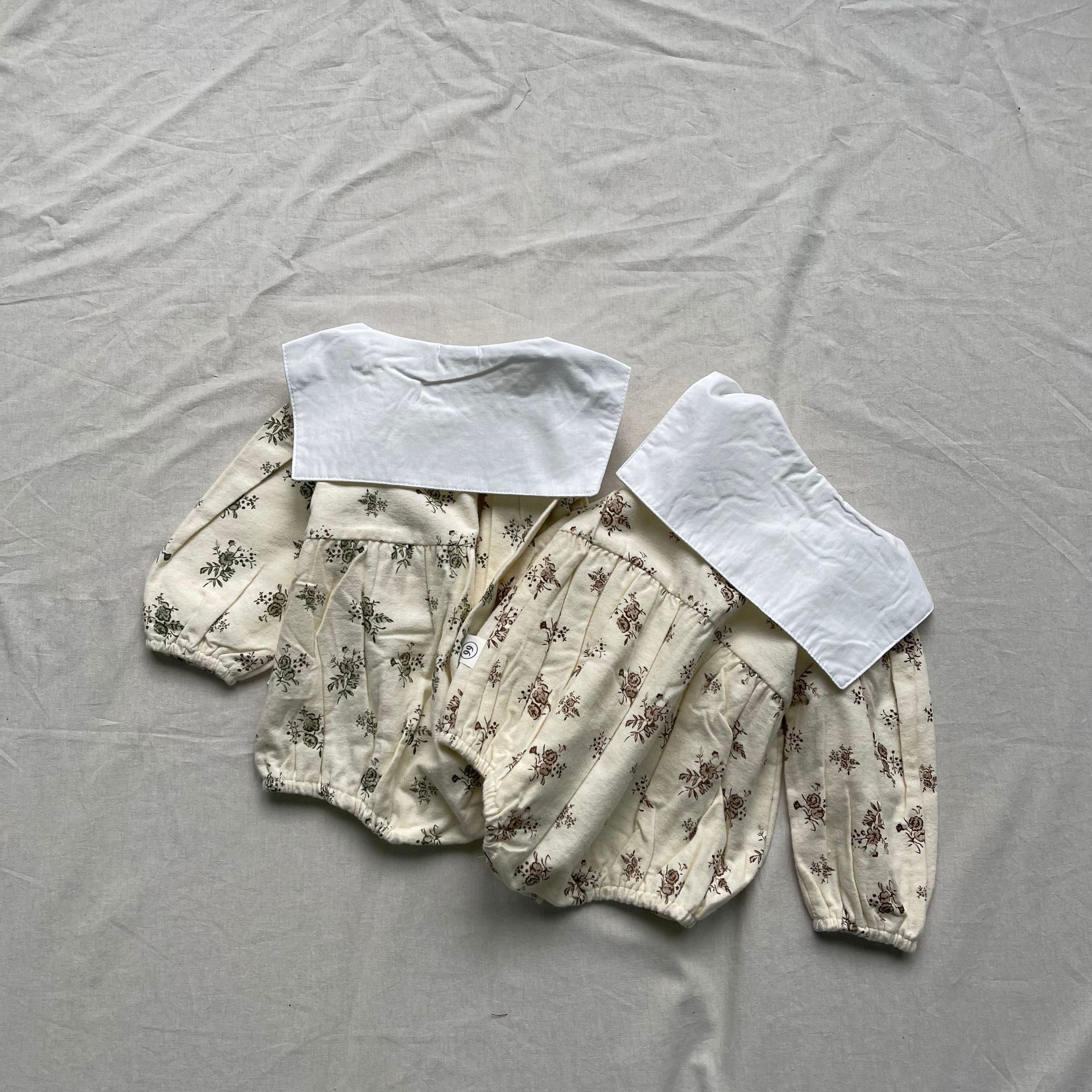한국식 인스타그램 스타일의 네이비 옷깃 인형 셔츠 아기 소녀를위한 긴팔 주름 랜턴 삼각형 스타일 Thatbag