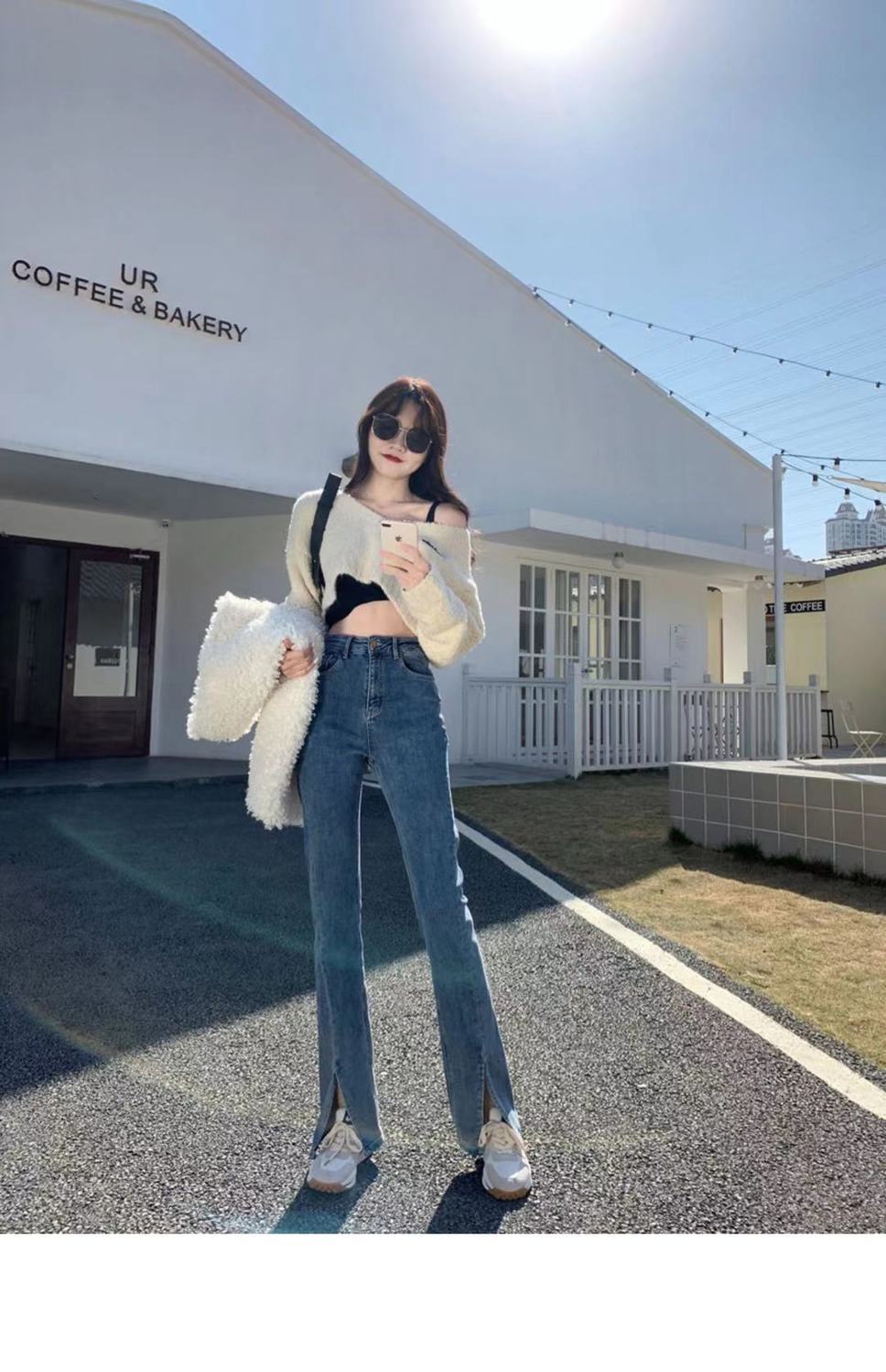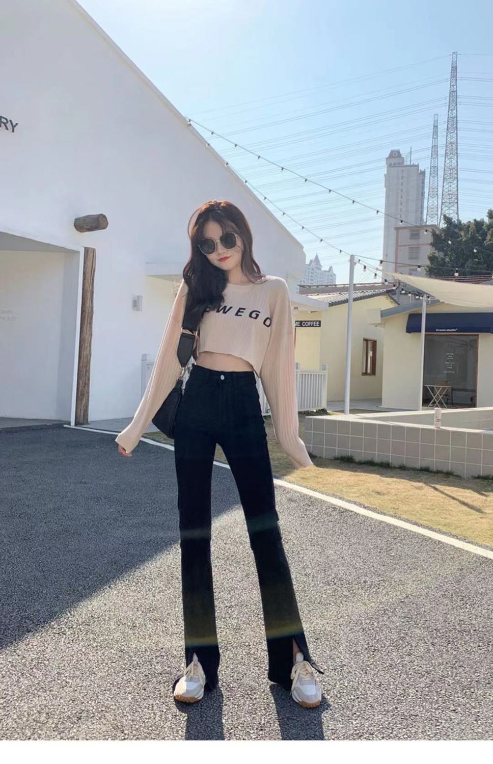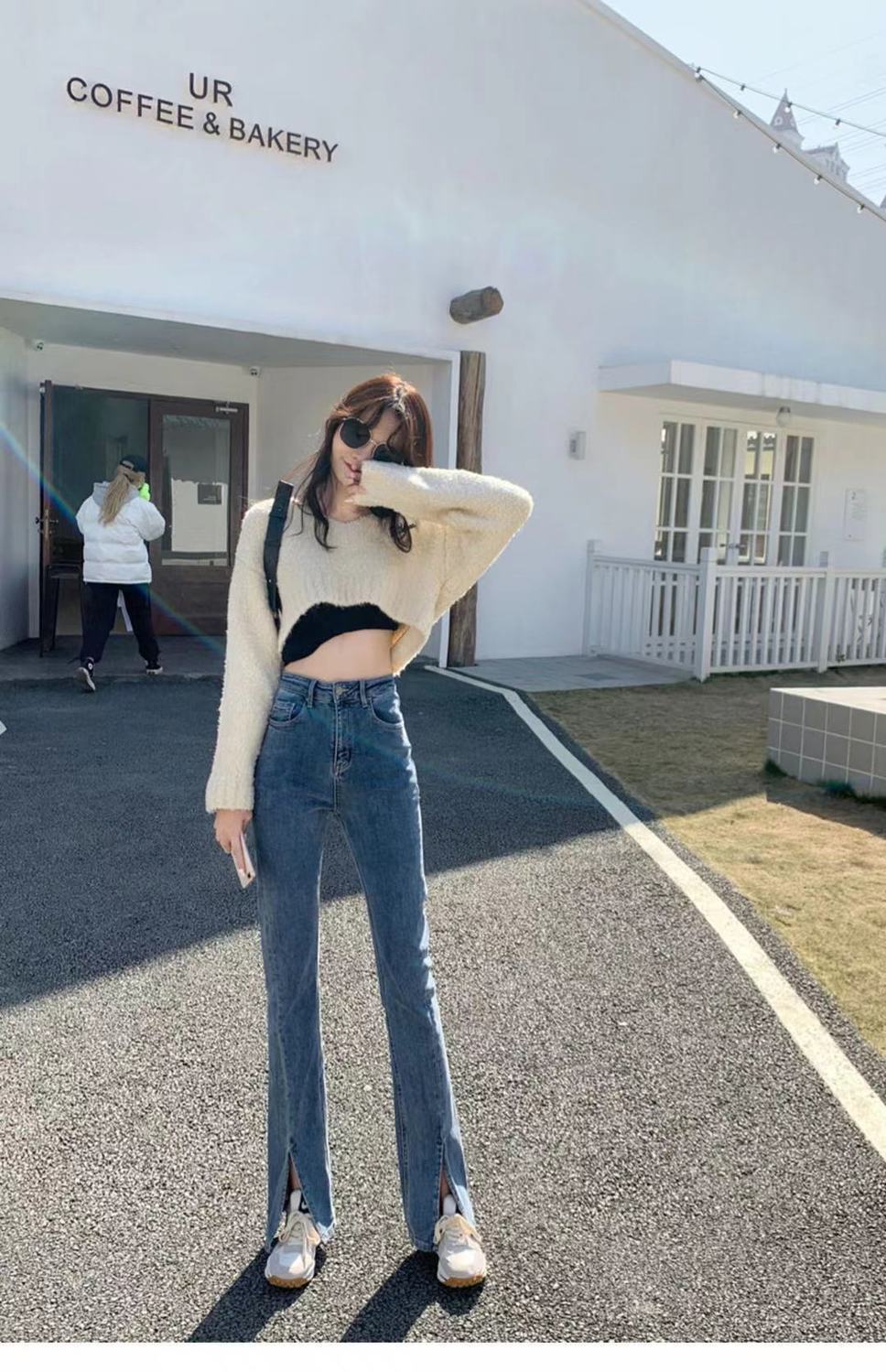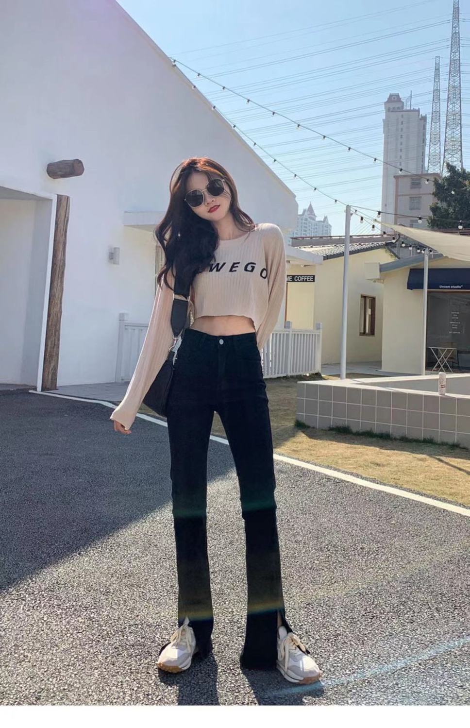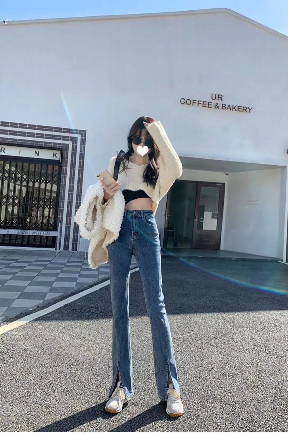 높은 허리 스트레치 드래핑 팬츠 약간 쪼개진 여성용 느슨한 슬리밍 넓은 다리 스플릿 트렌디 벤트 플라 드 팬츠스토어 가기