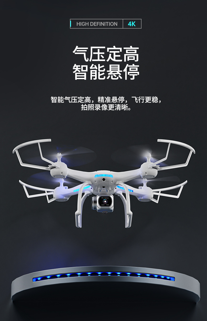 六通带陀螺仪,智能避障,一键起飞降落,上升下降,前进后退,左右侧飞,转向,无头模式,悬停,高清摄像头,手势拍照,录像,急停,轨迹飞行,重力感应,50倍变焦。