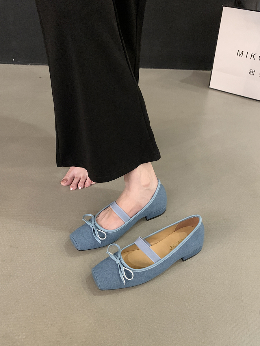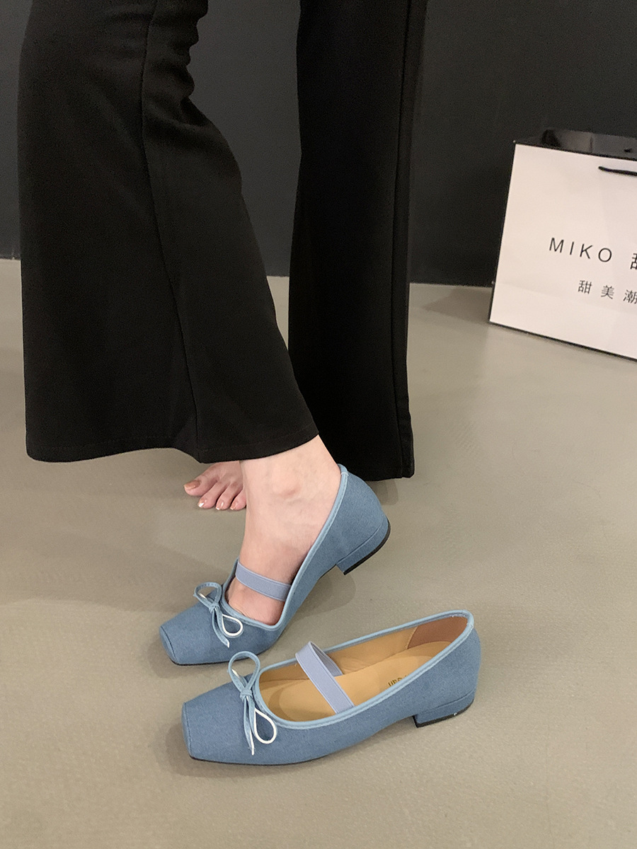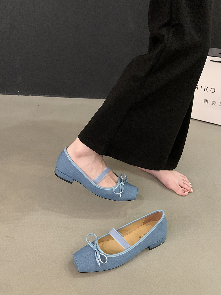 프랑스 레트로 메리 제인 신발 여성 신발 2024 새로운 여름 광장 발가락 얕은 활 요정 스타일 신발스토어 가기